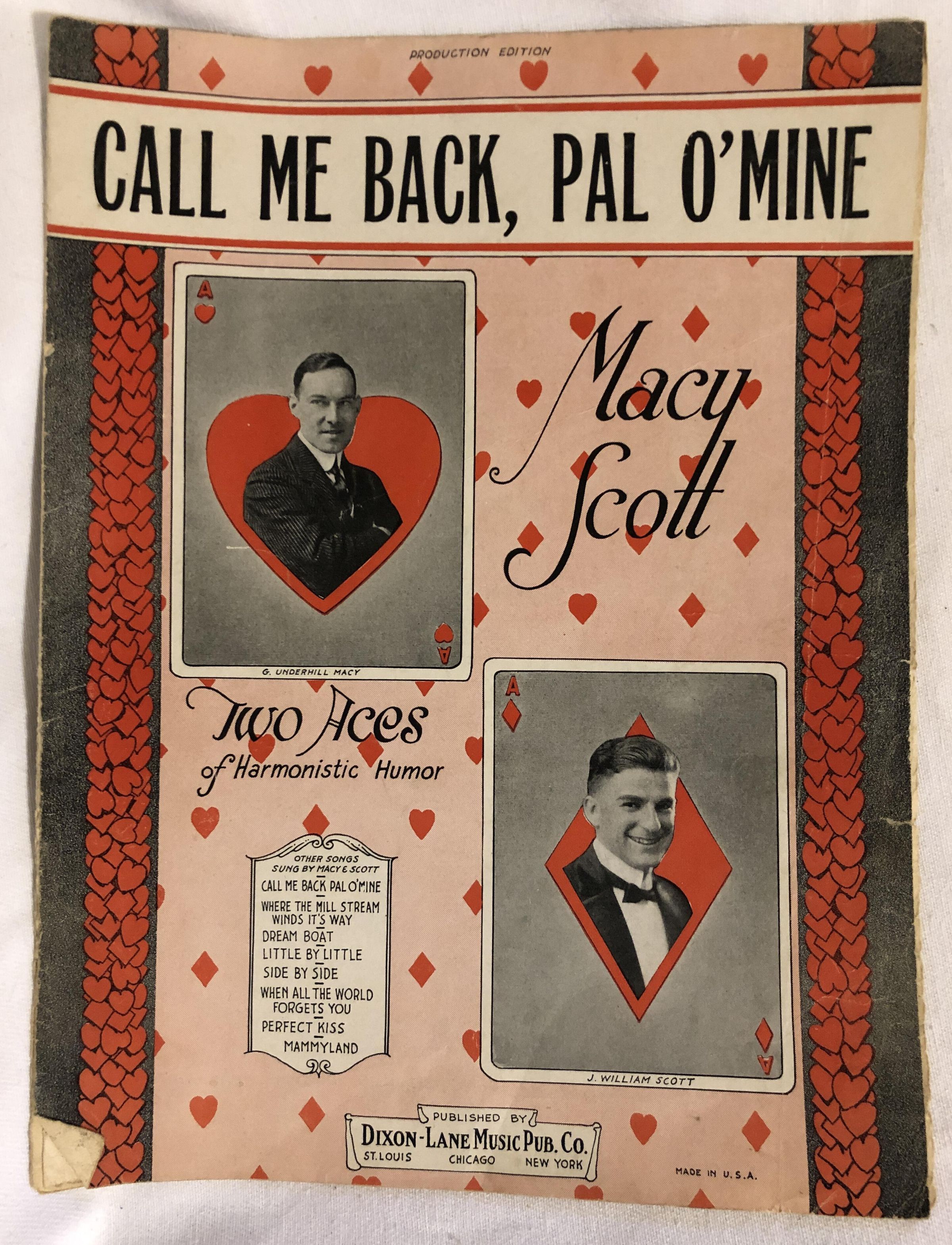 'Call Me Back, Pal O'Mine' Sheet MusicEntry/Object ID