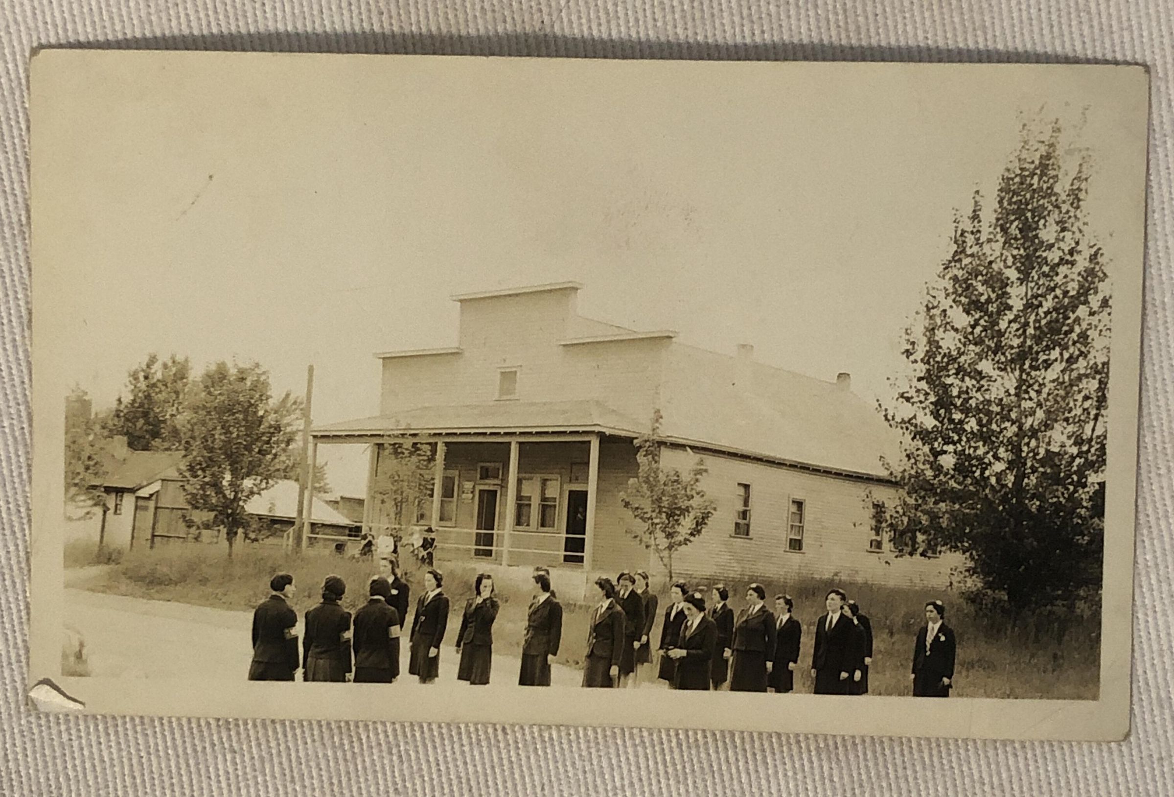 Paper with photo said 'This pictire show it with just one story taken after top story was snapped off with heavy snow'Acquisition