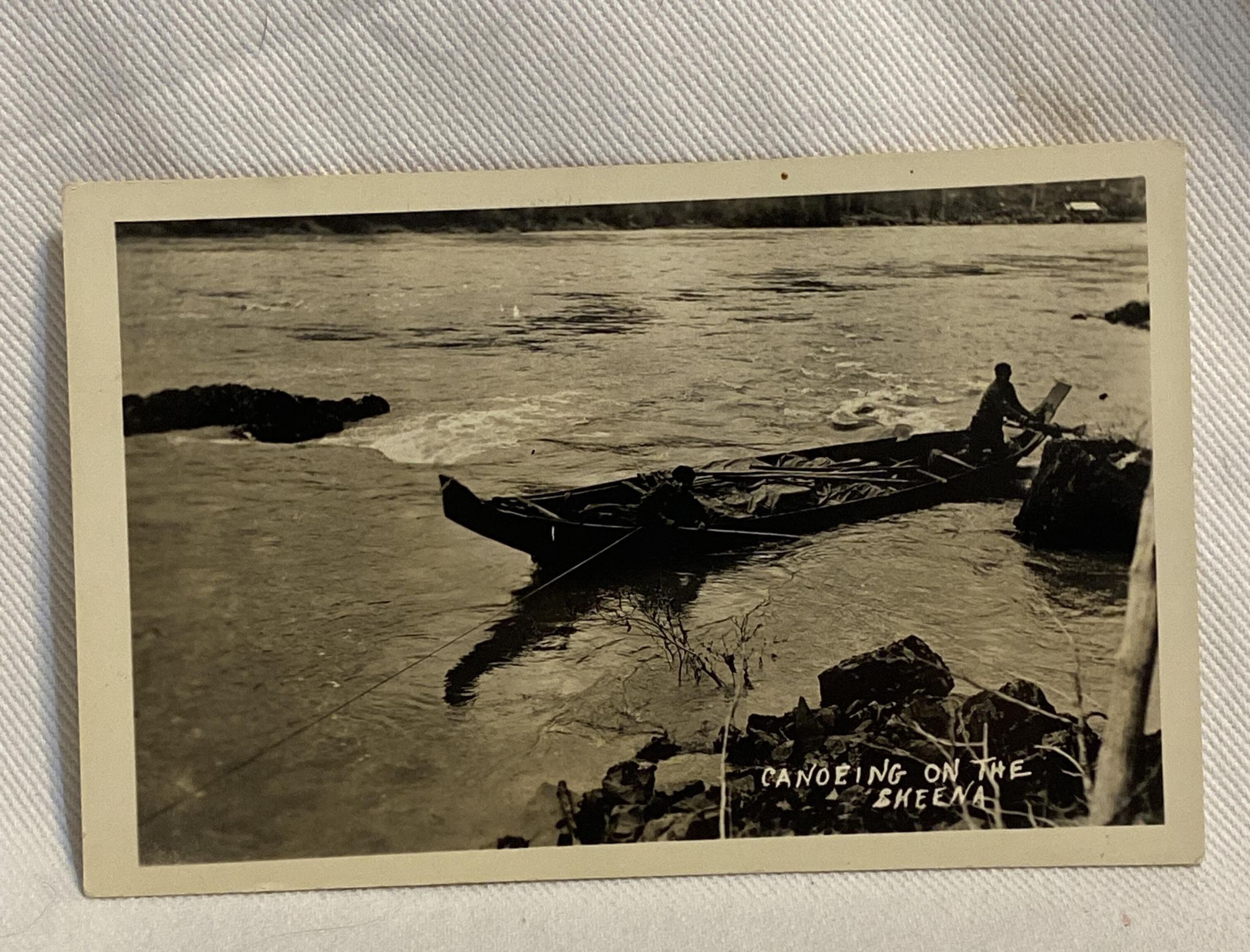 Postcard of First Nations Canoe on the Skeena River near HazeltonPhotograph Details