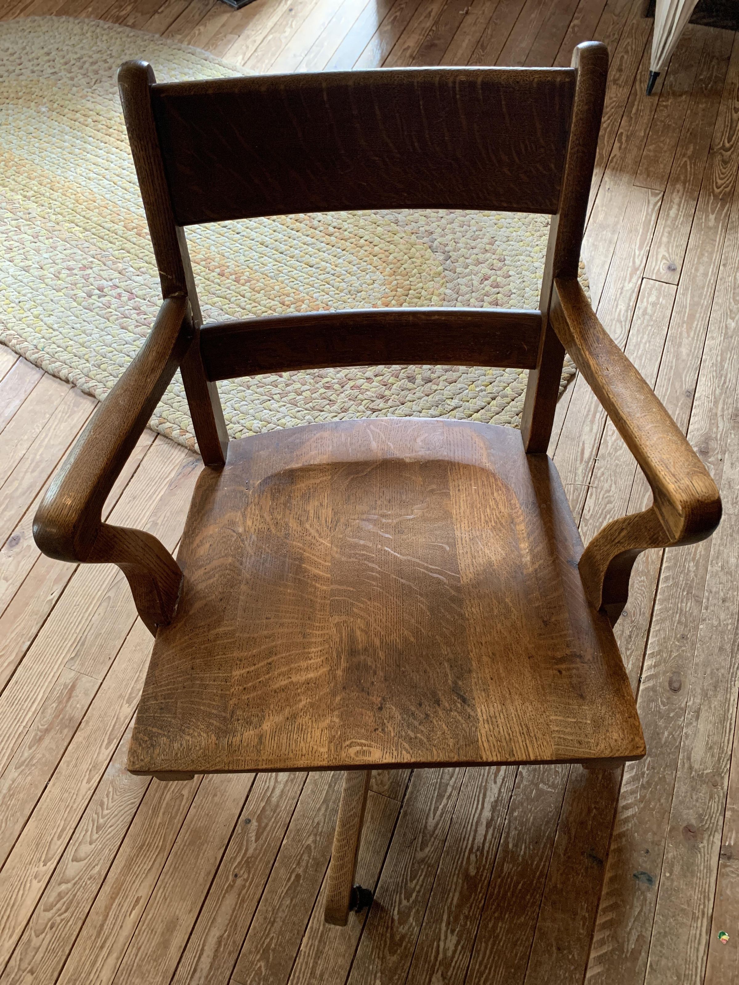 One piece on the arm has been replaced. The chair is from the Government building in Prince RupertAcquisition