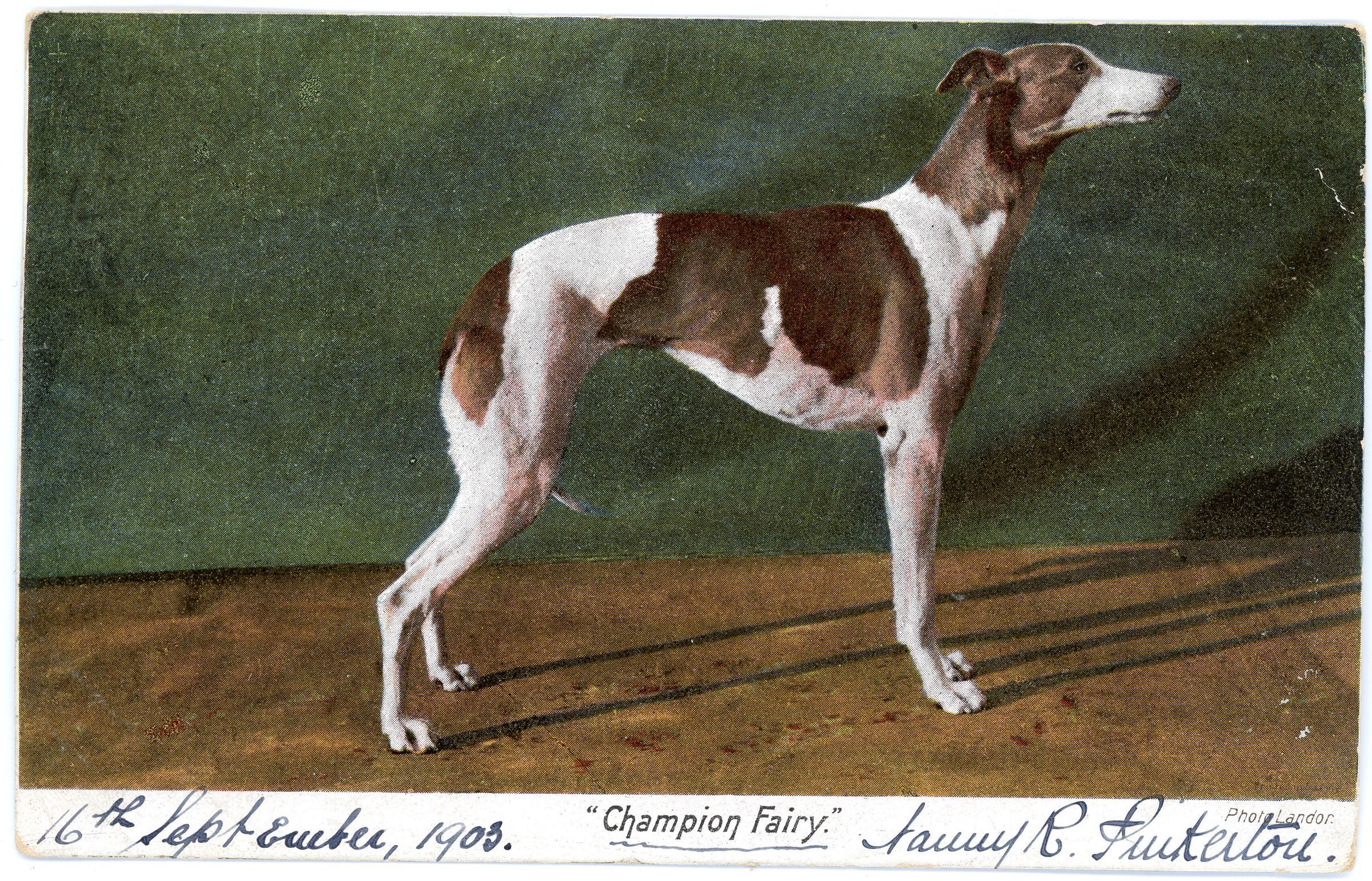Postcard from 1903 of a dog, the print is called the Campion FairyCollection