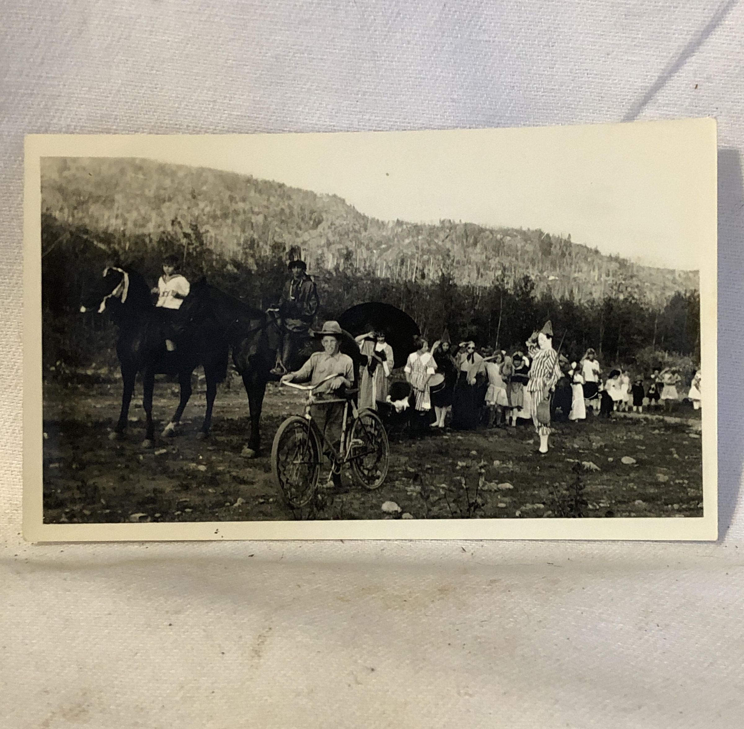 Back says 'Chataqua Day Blackie McConnel (Kenney) on horse, Dudley Little on Bicycle, 1st of july paradePhotograph Details