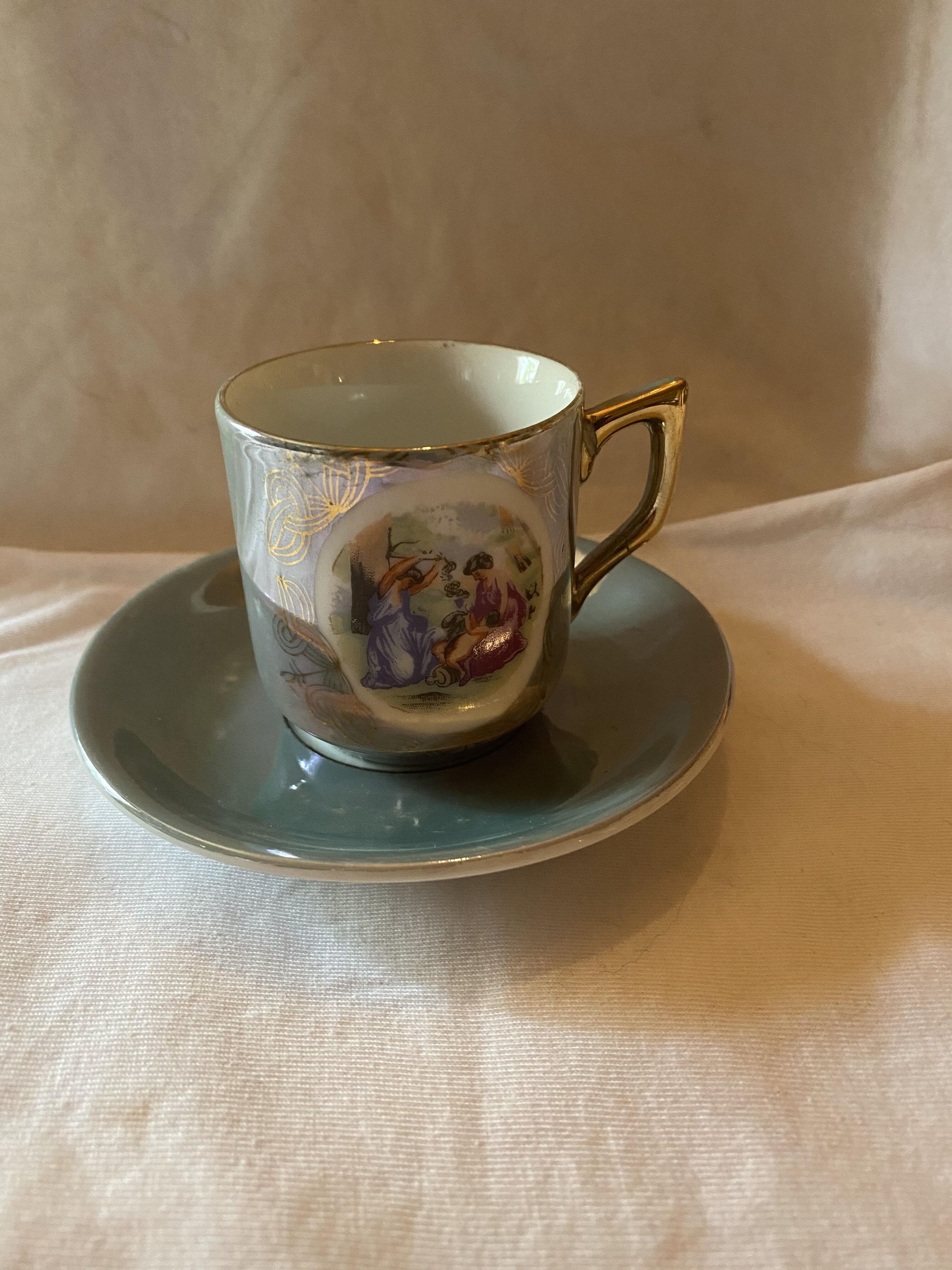 Demitasse Dishes - cups & saucers green with ladies as designAcquisition