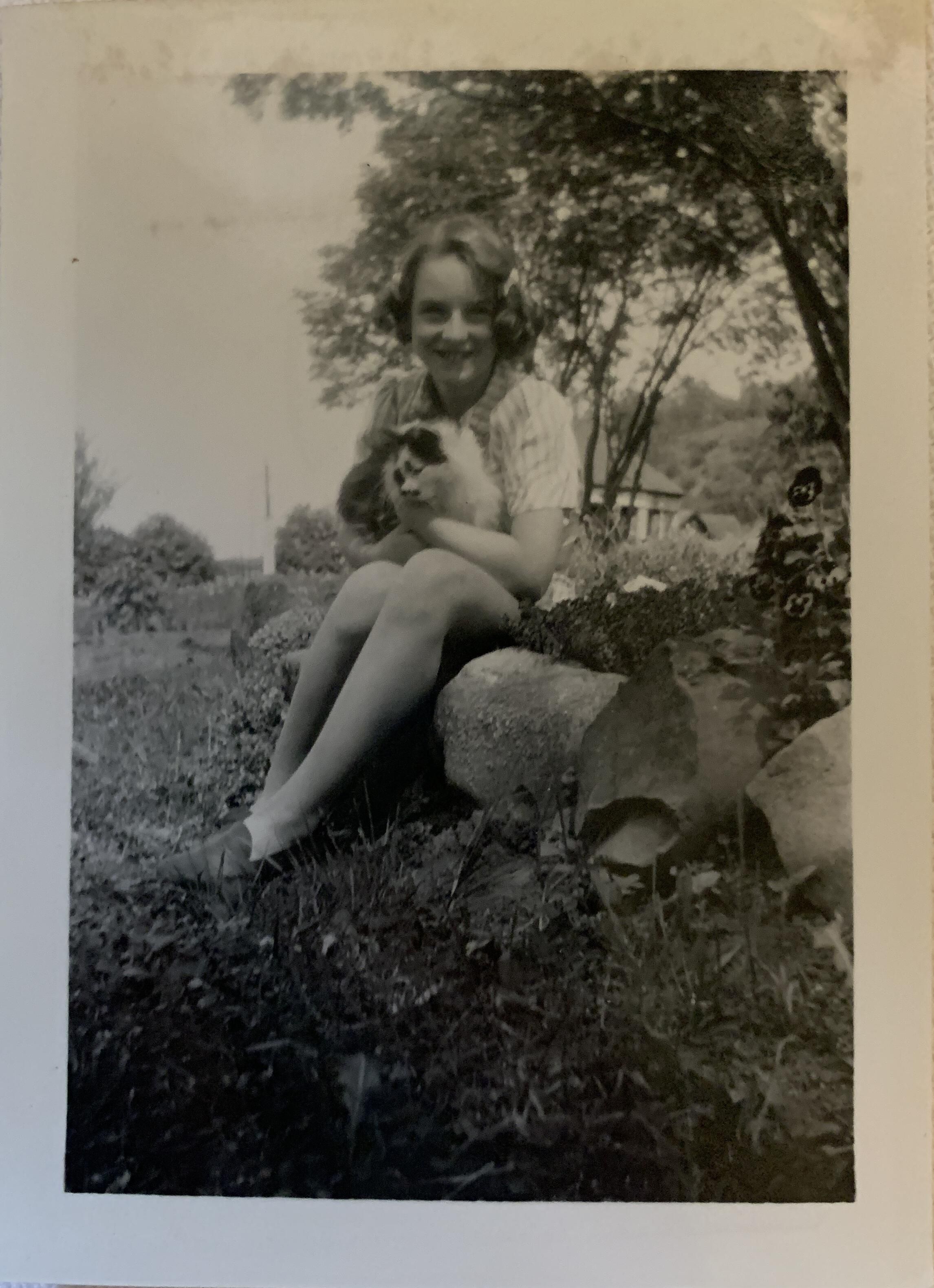Diana Mallinson with cat, Hazelton, June 1946Acquisition
