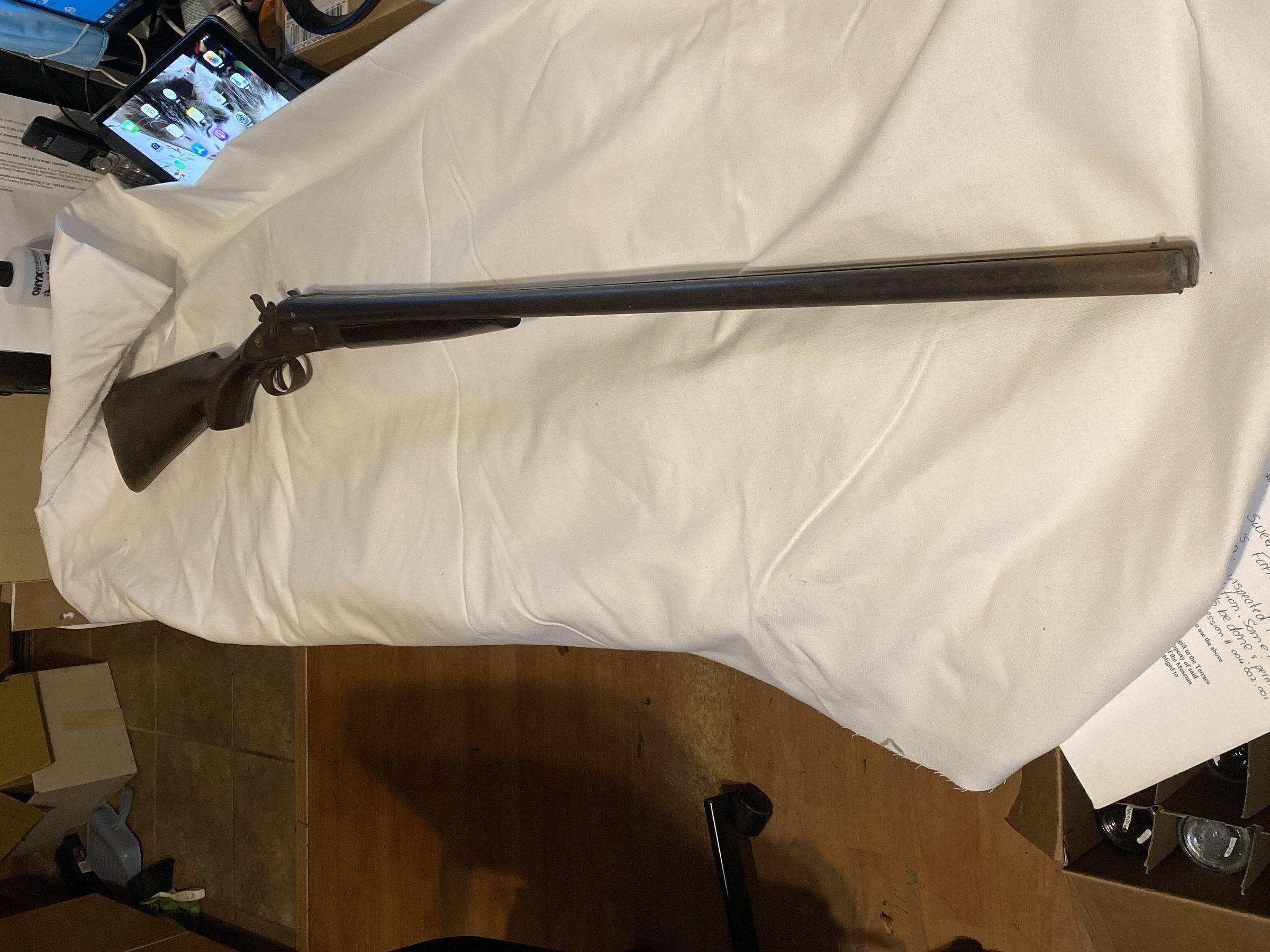 Has been deactivated once through welding of the breech and barrels plugged and welded, deactivation confirmed by armourer, information on piece in file. Double Barrelled 20 gauge shotgun breech loader. This original double barrewl, percussion shotgun is an imported centerfire 20 gauge side by side. The mid to late 19th century hunting piece is stamped 'Patd June 20 1883' on right side. Shotgun carries Liege, Belgium proofs and features a 30" long barrel marked "TRAP GUN MACHINE MADE LAMINATED STEEL"Firearm Type