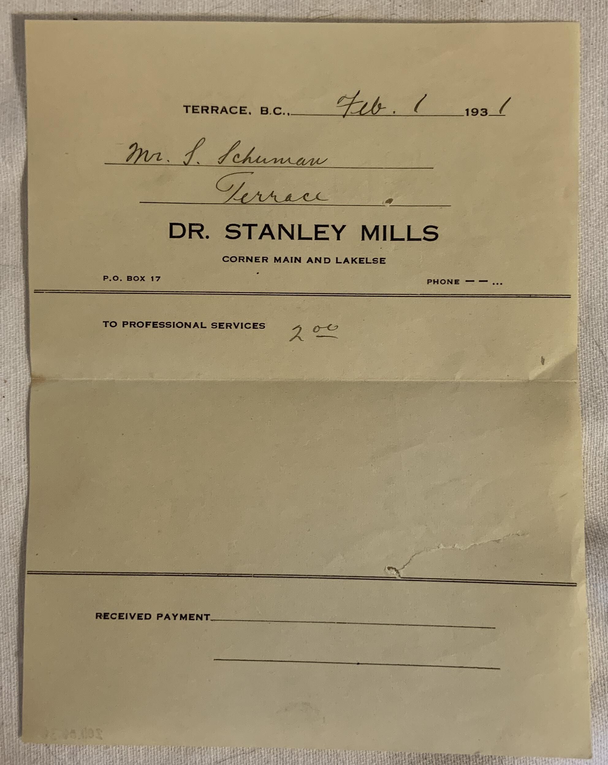 Dr. Stanley Mills BillEntry/Object ID