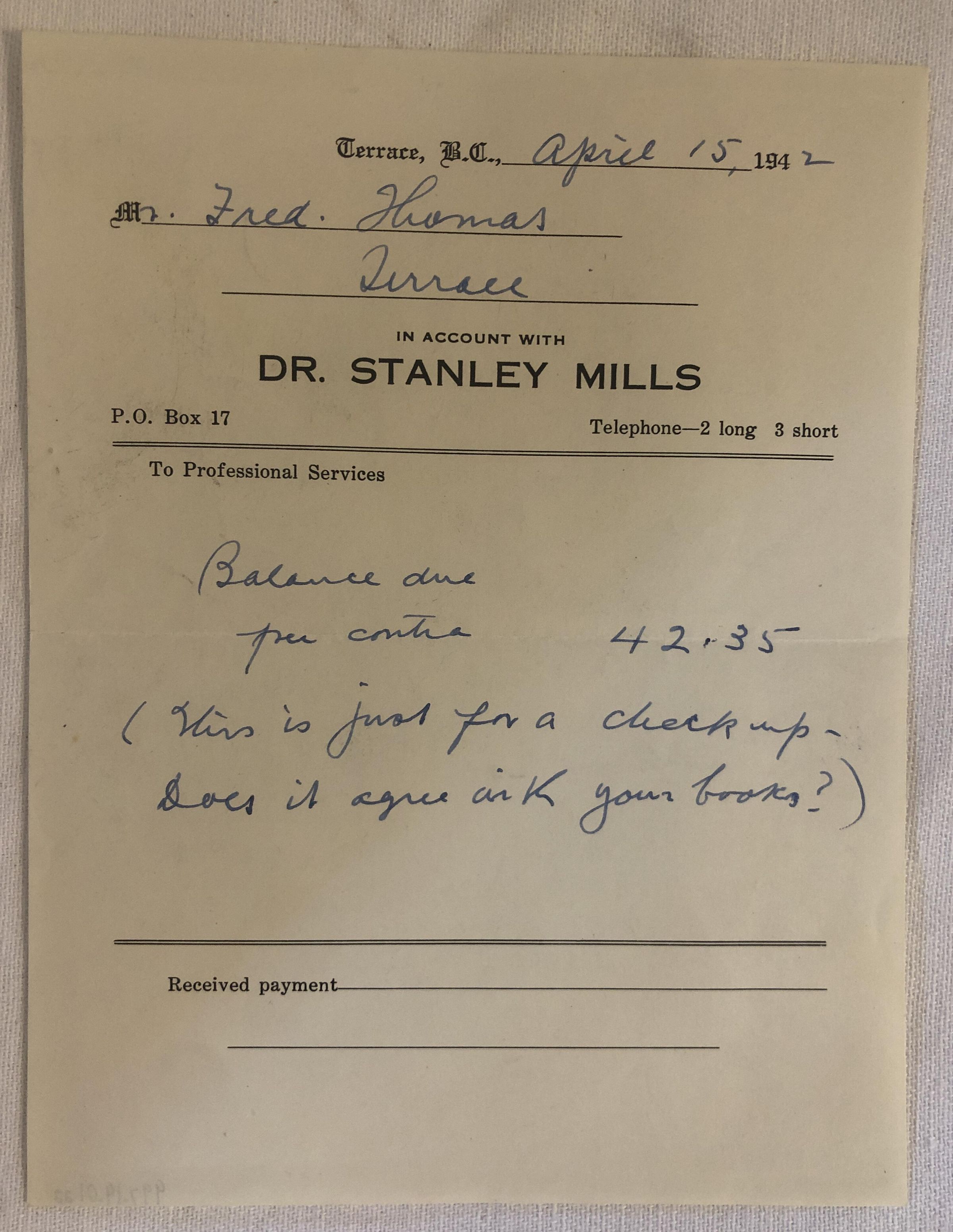 'Dr. Stanley Mills' ReceiptEntry/Object ID