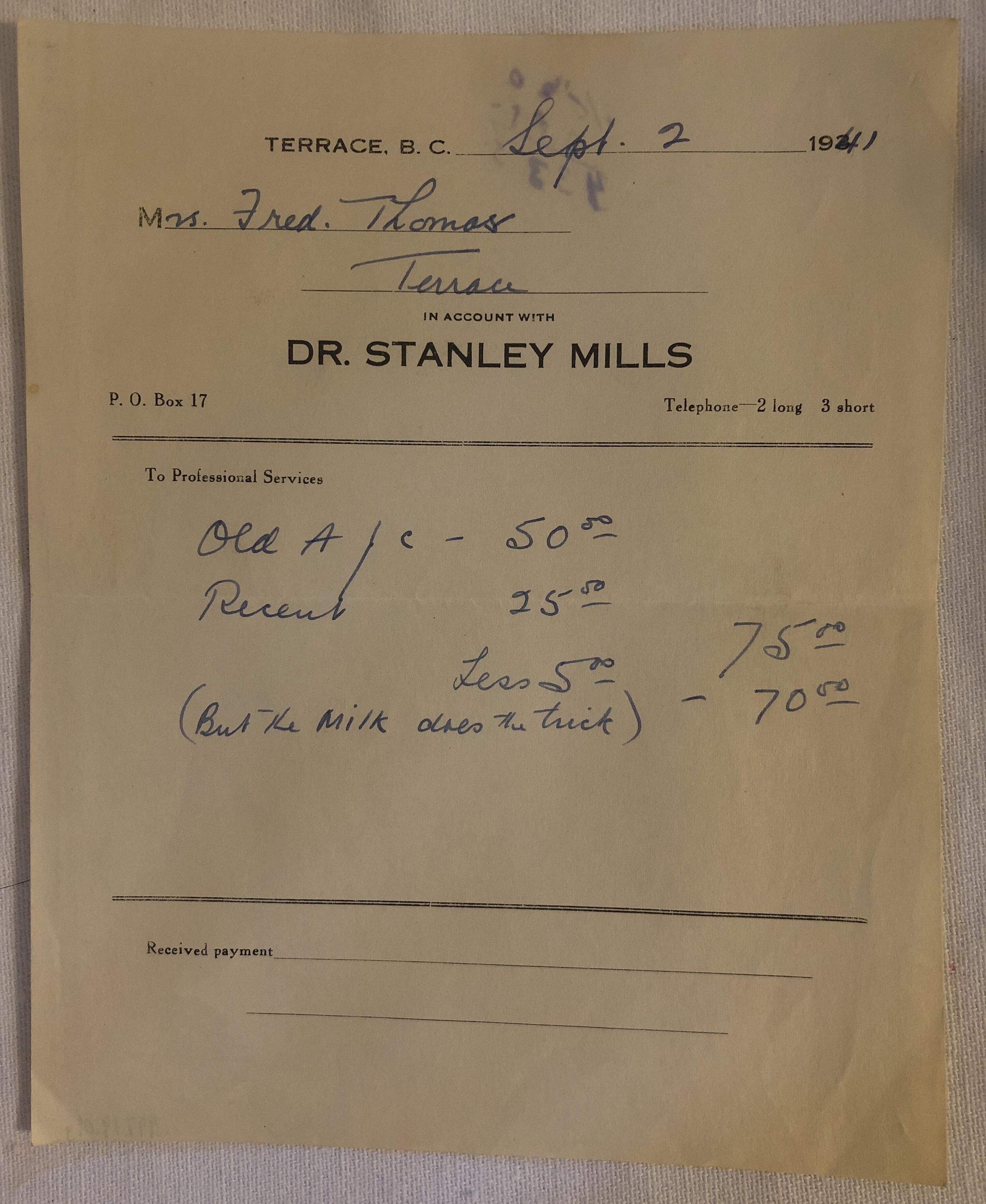 'Dr. Stanley Mills' ReceiptEntry/Object ID