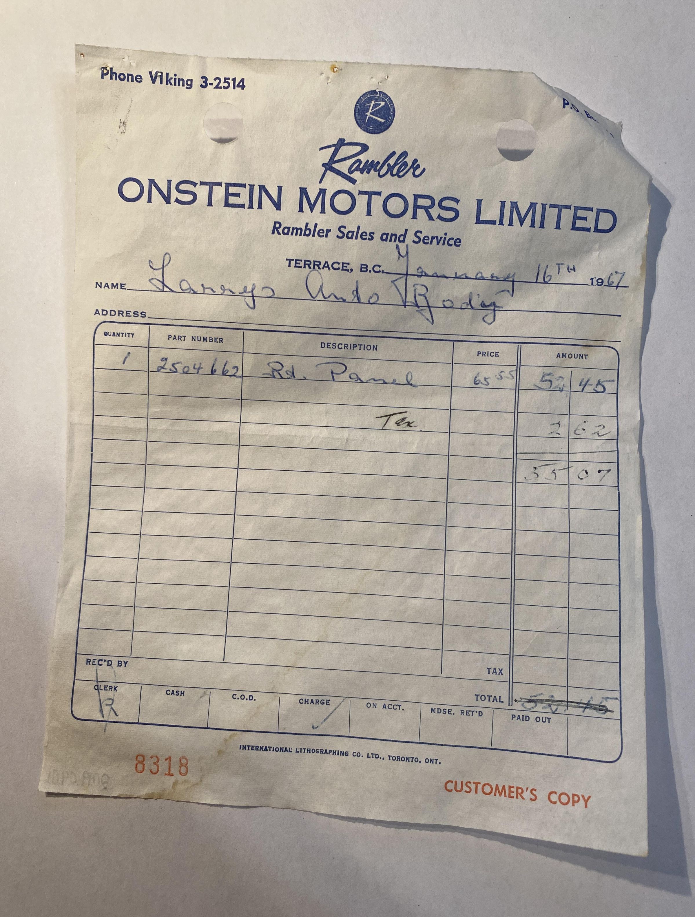 'Onstein Motors Limited 1967' ReceiptEntry/Object ID
