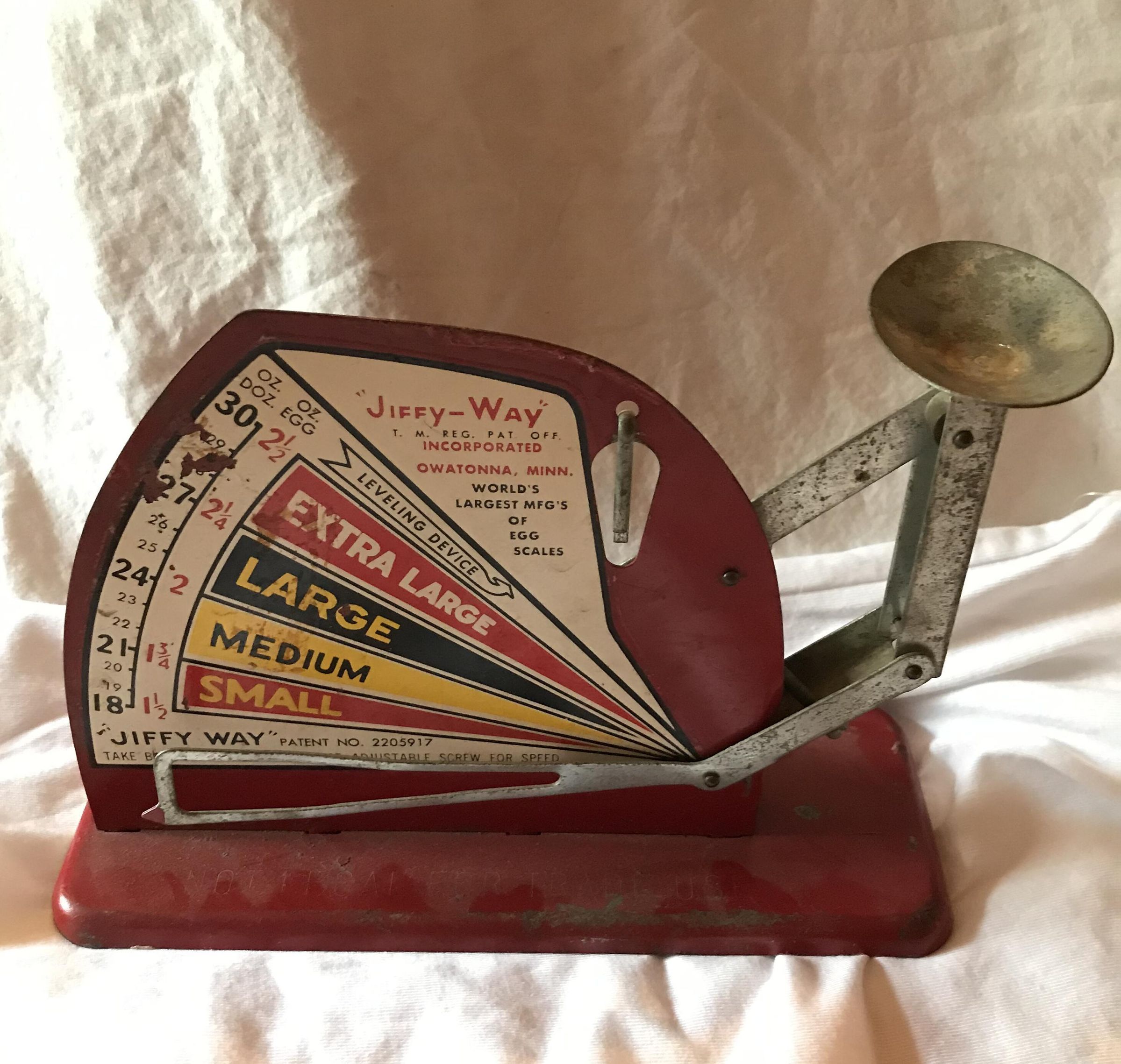 It was used to weigh eggs 1970-1985 at Koziers FarmAcquisition