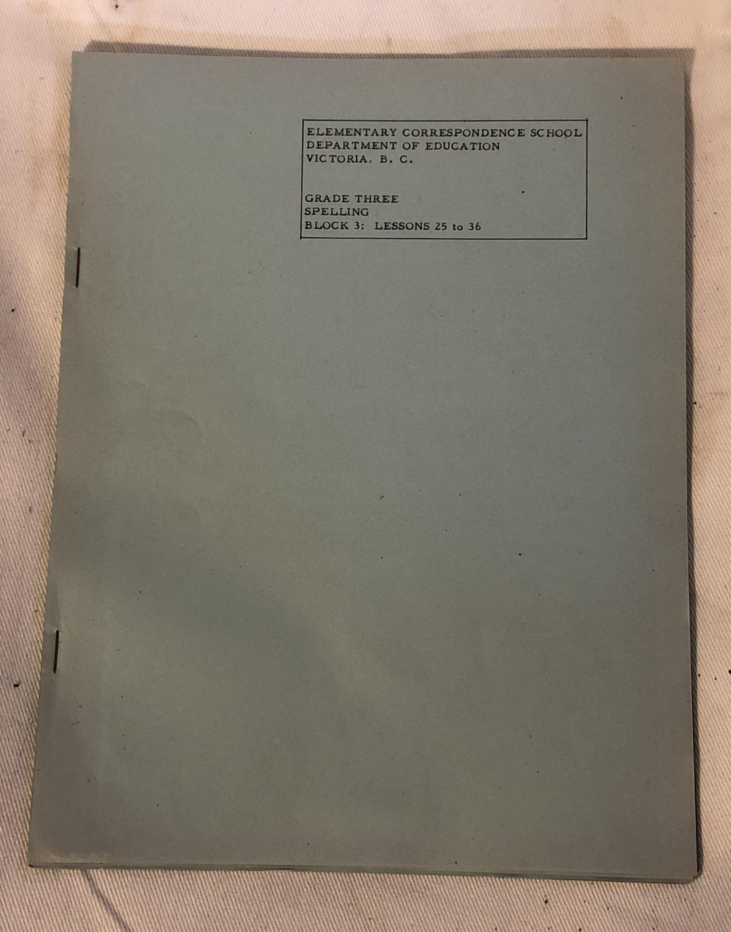 'Elementary Correspondence School.. Greade Three Spelling Block 3: Lessons 25 to 36'Entry/Object ID