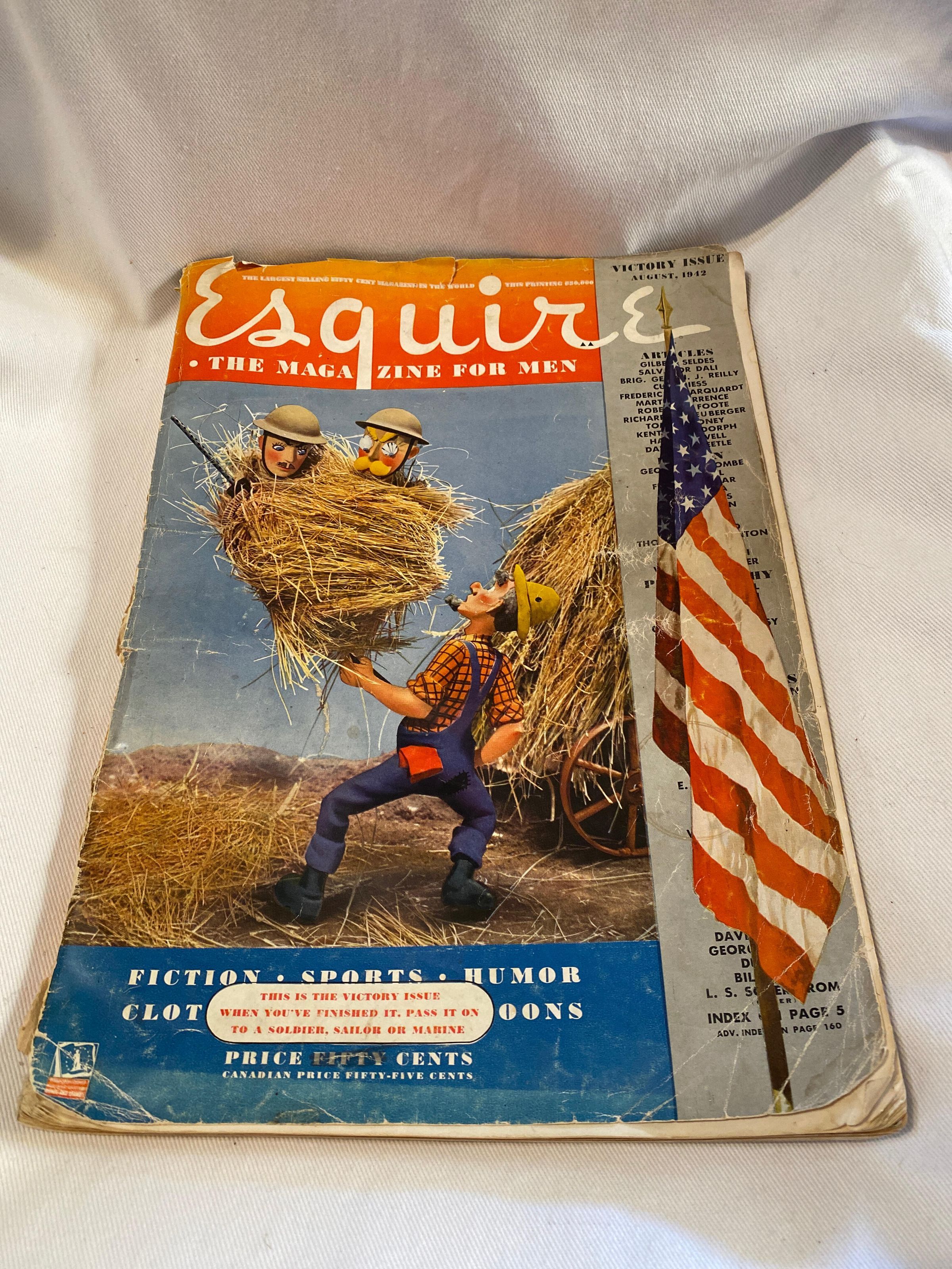 'Esquire the Magazine for Men', Farmer with hay and soldiers on cover Victory IssueAcquisition