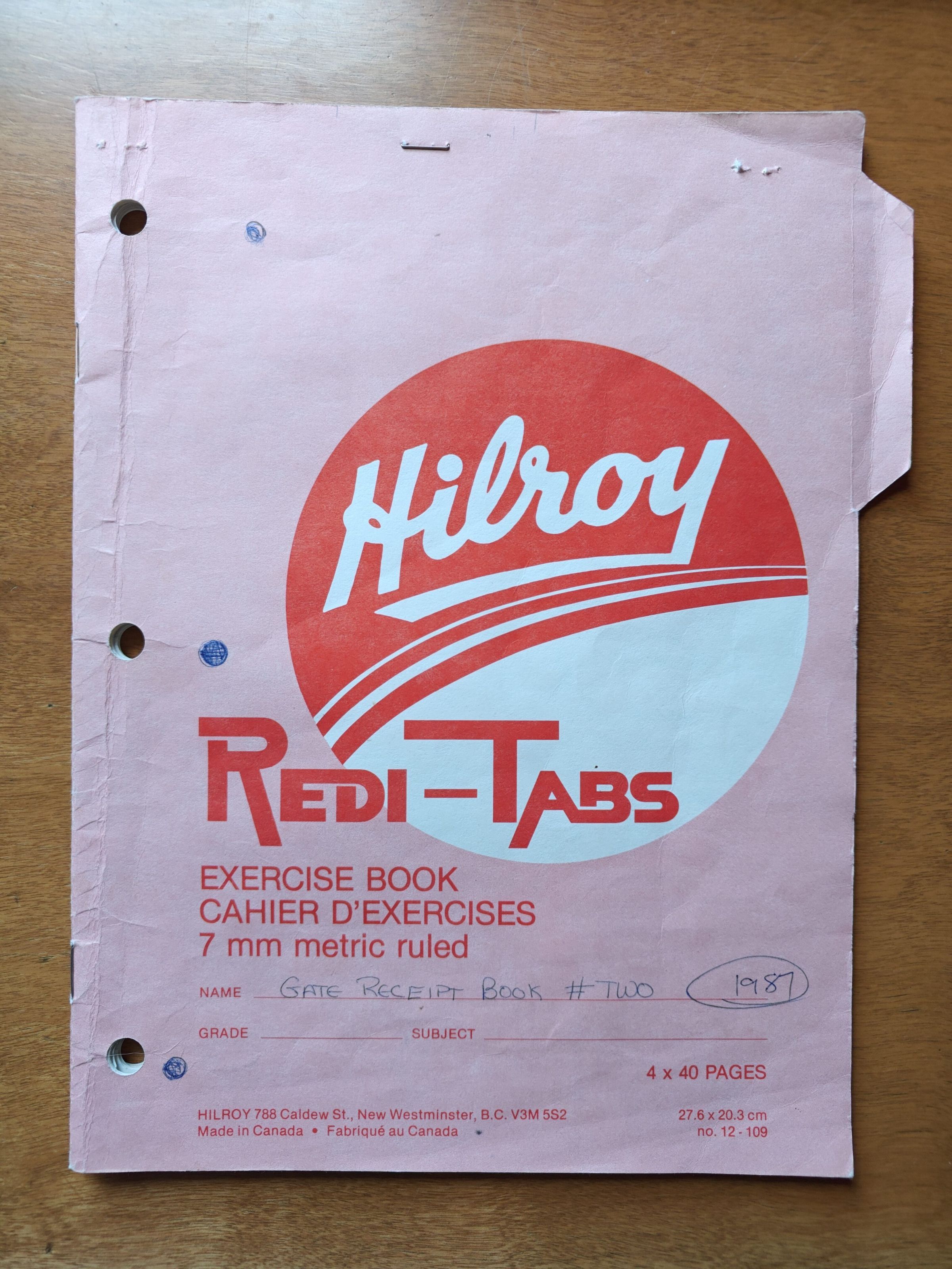 Gate Receipt Book 1987 # Two