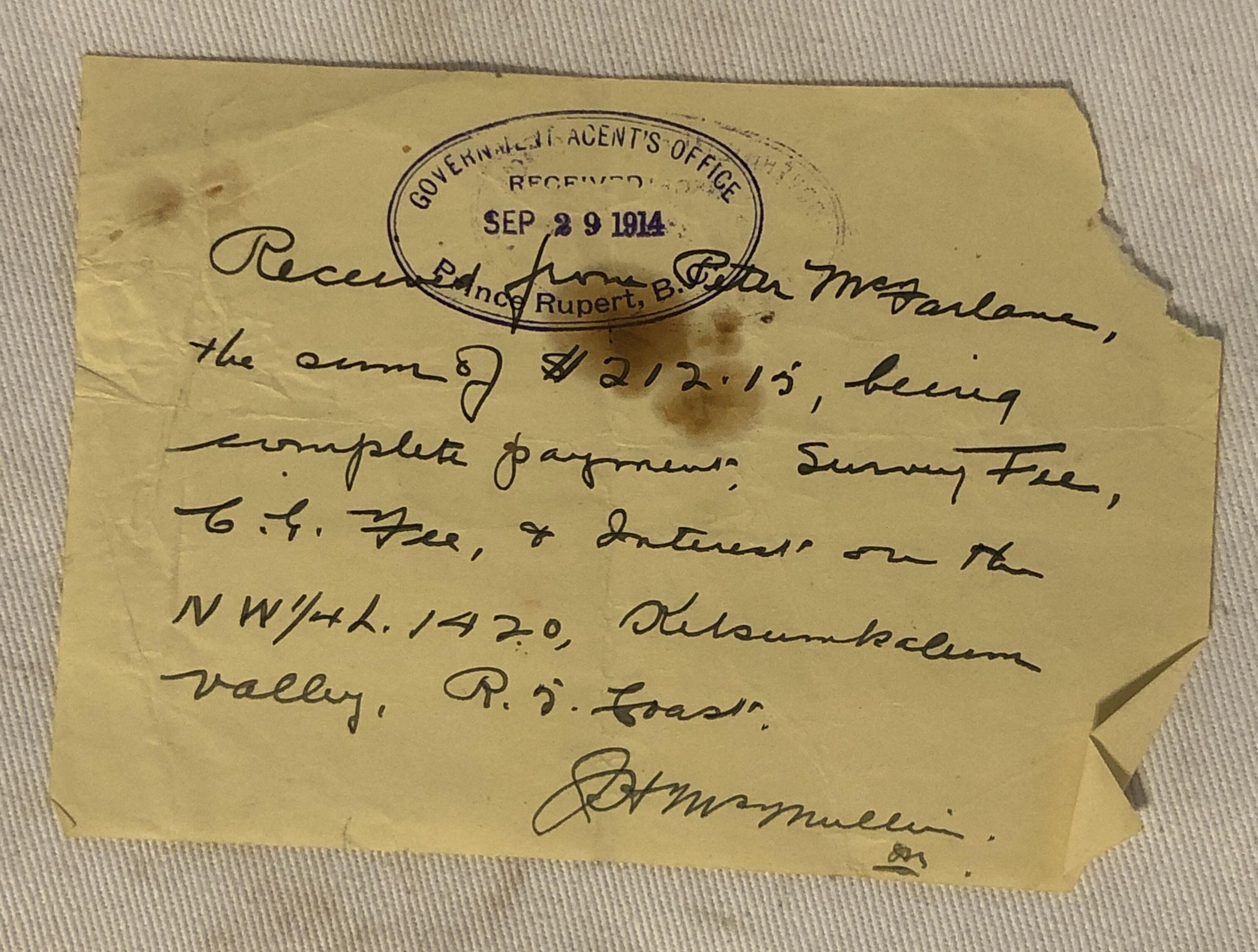 'Government Agent's Office 1914' ReceiptEntry/Object ID