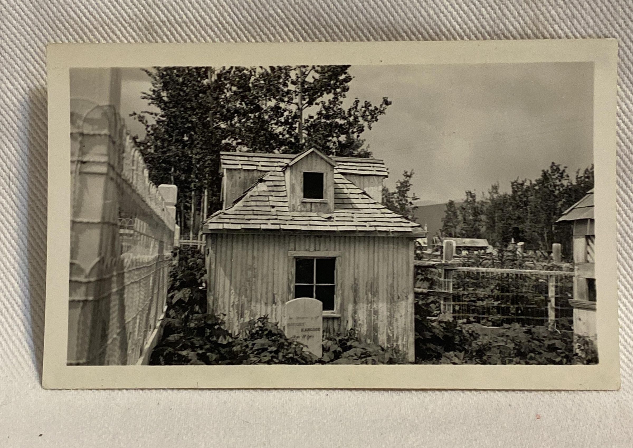 'Gravehouse of a child, Old Indian cemetery at Hazelton July 1933'Entry/Object ID