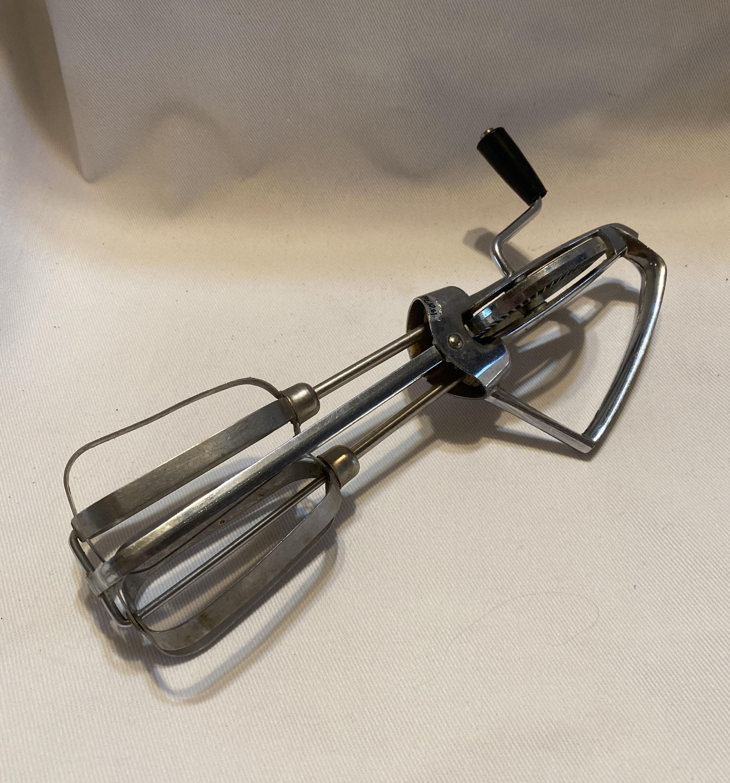 metal hand mixer with black plastic handle.Acquisition