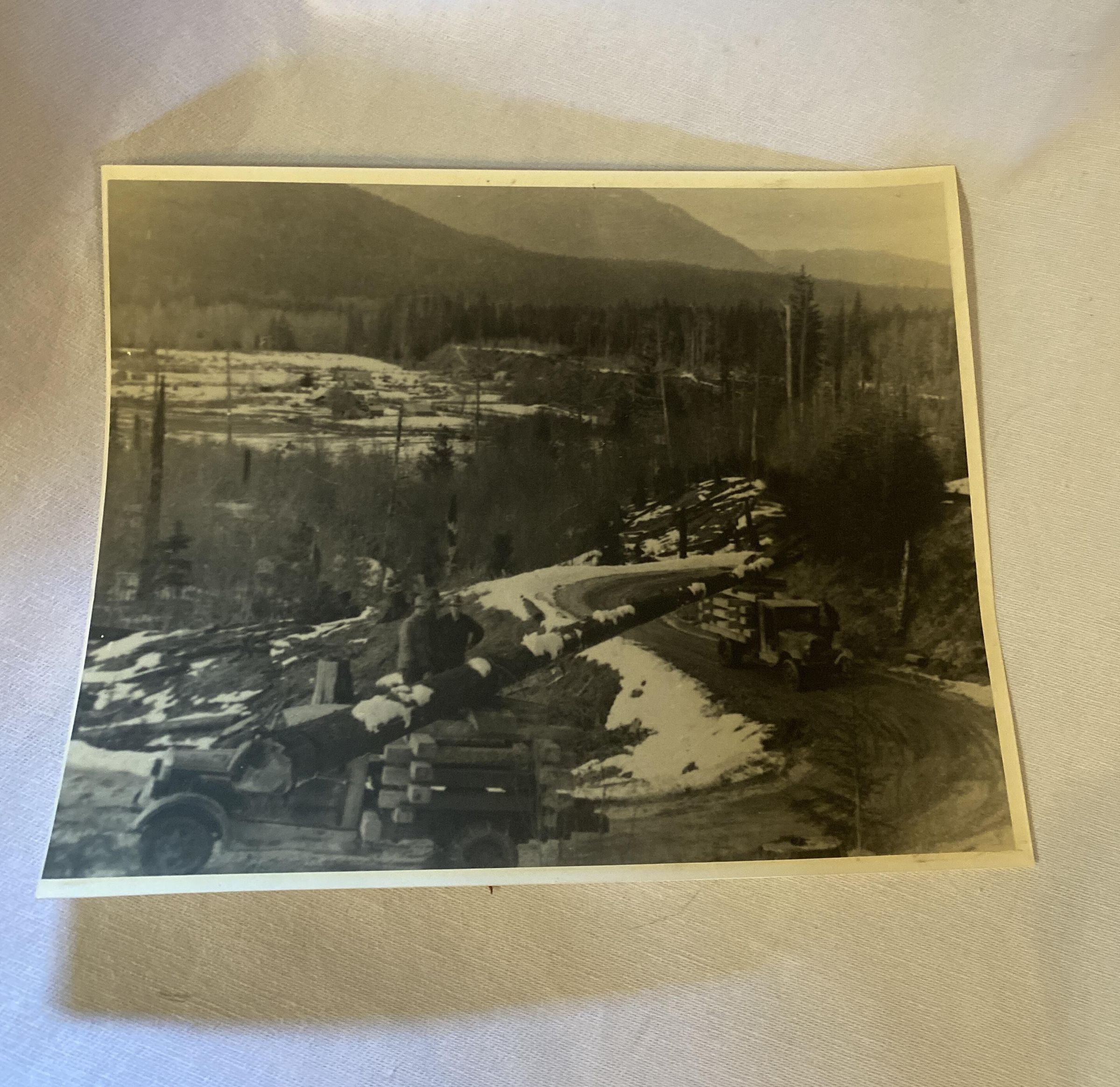 hauling extra long cedar pole, picture taken on snake hill, Dutch Valley in background late 1930sAcquisition