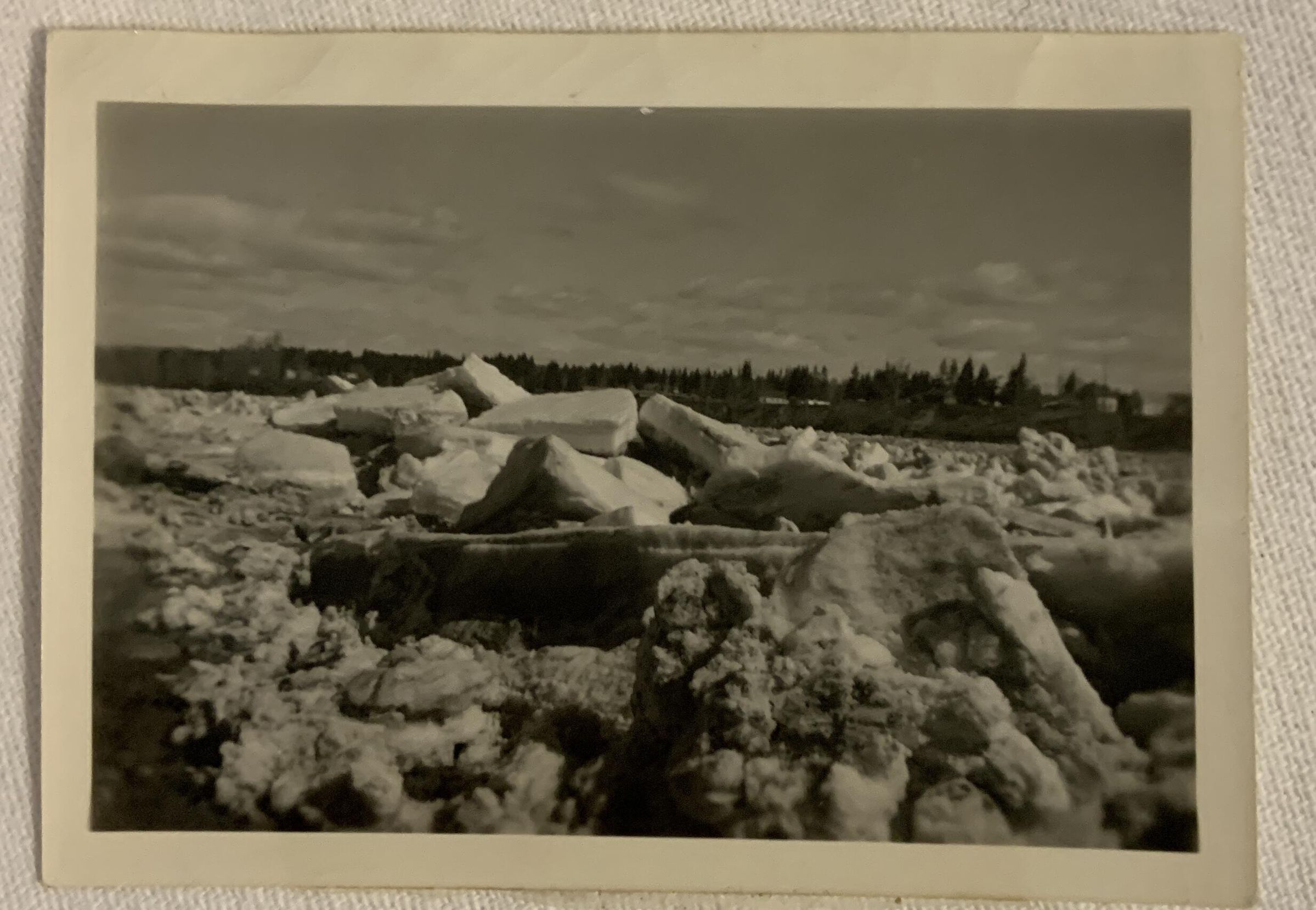 'Ice piled up on Fraser River at Quesnel Spring 1951'Entry/Object ID