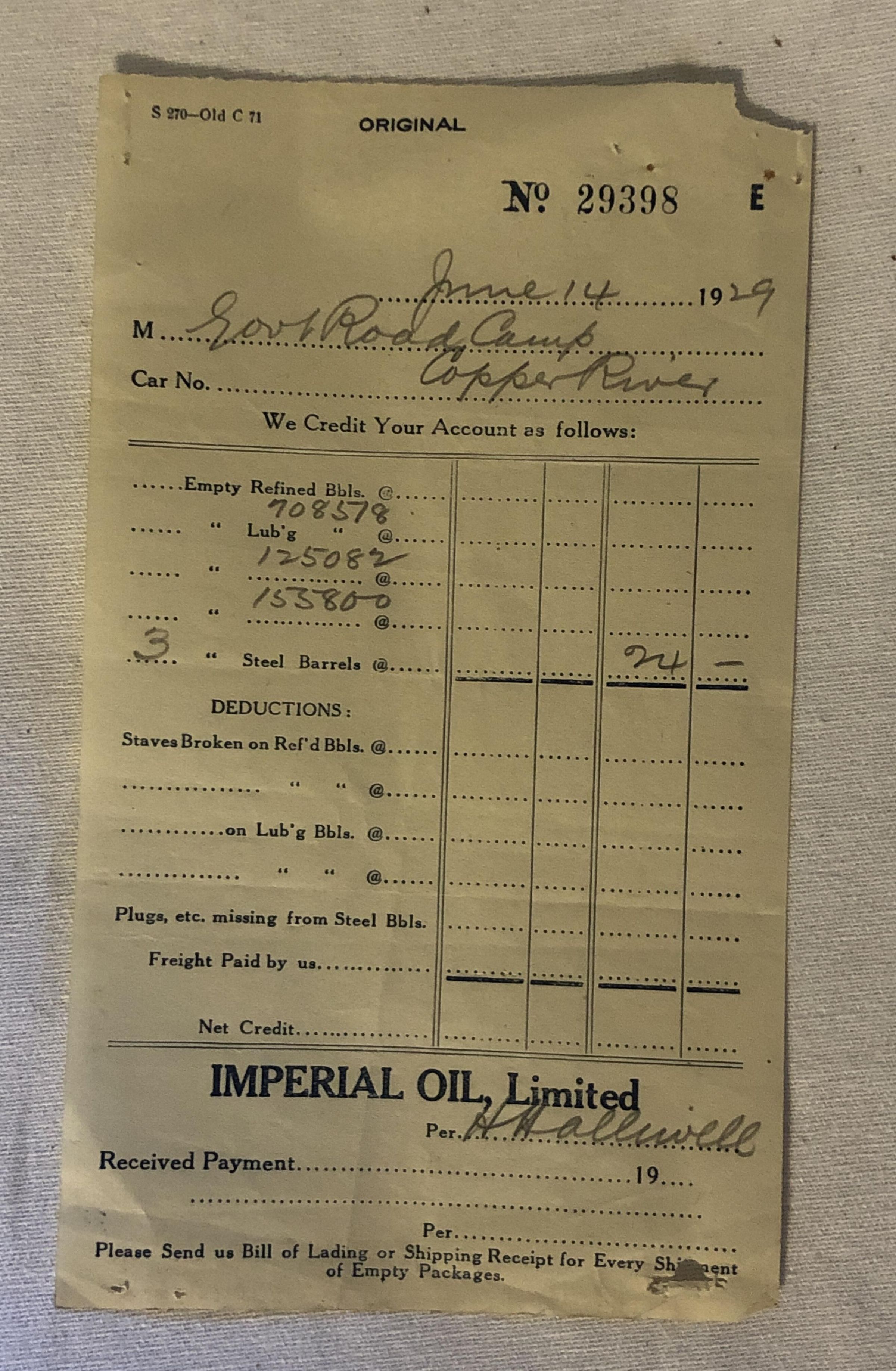 'Imperial Oil Credit 1929'Entry/Object ID