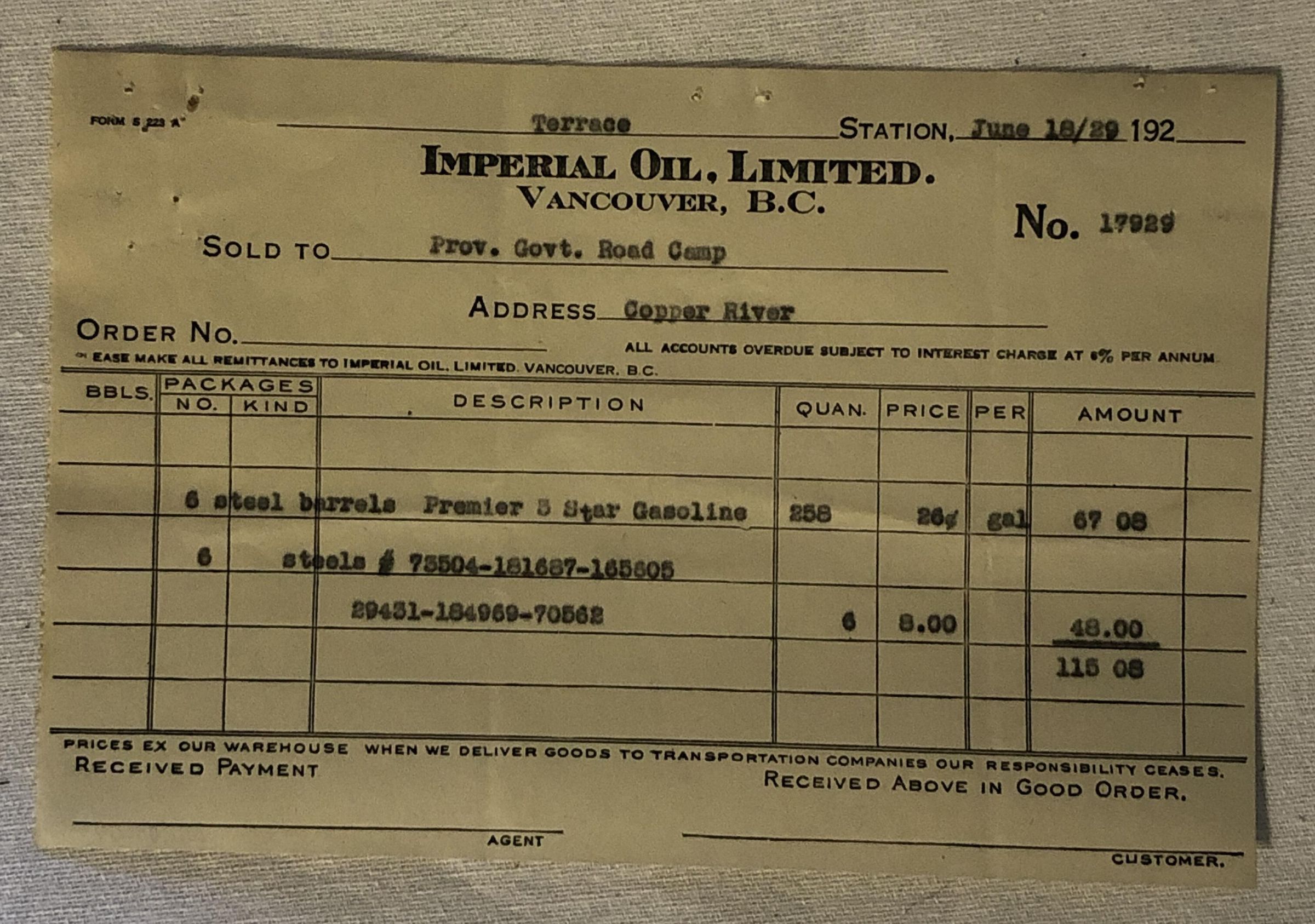 'Imperial Oil Limited 1929' OrderEntry/Object ID