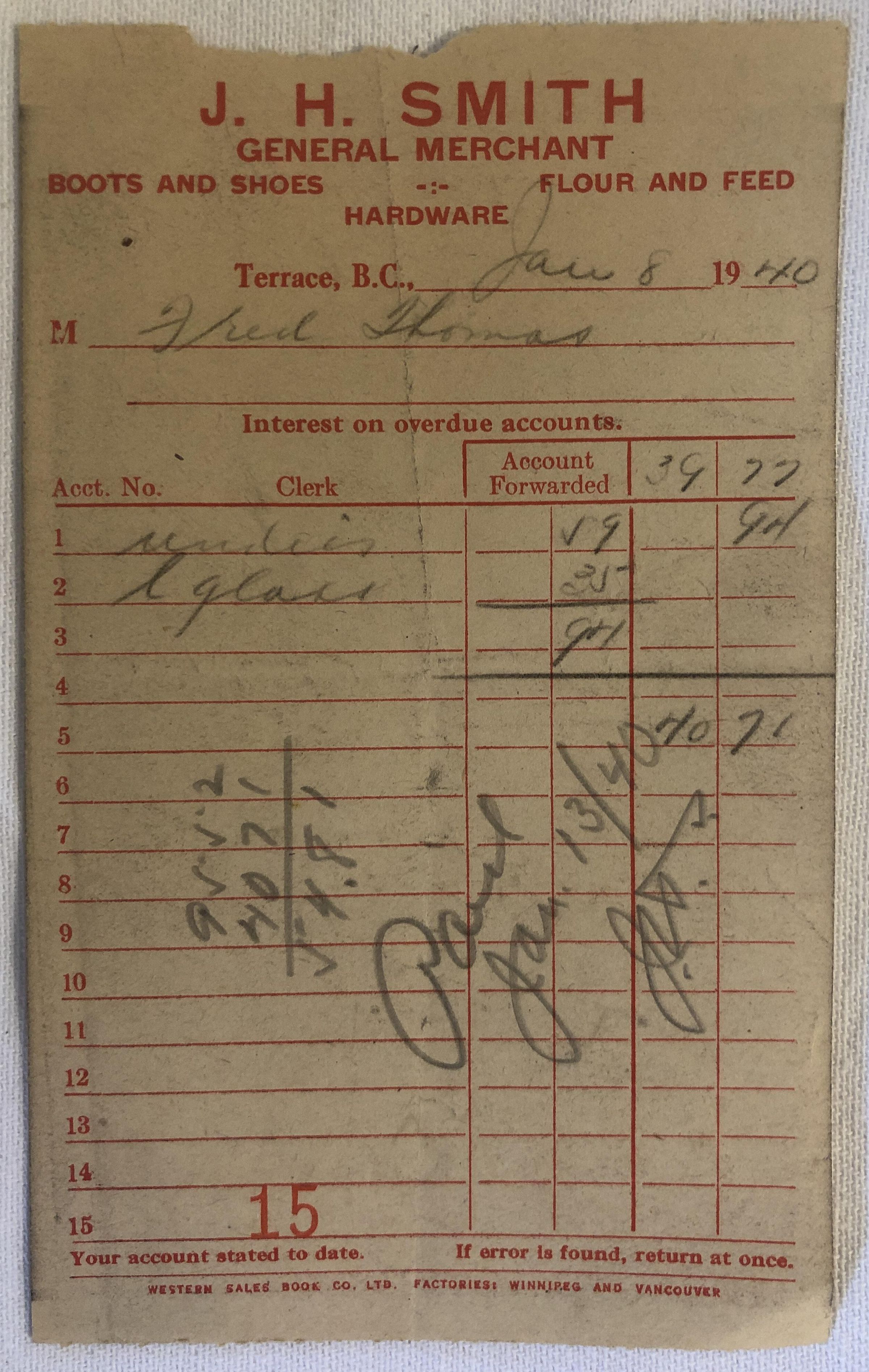 'J.H. Smith General Merchant Receipt'Entry/Object ID