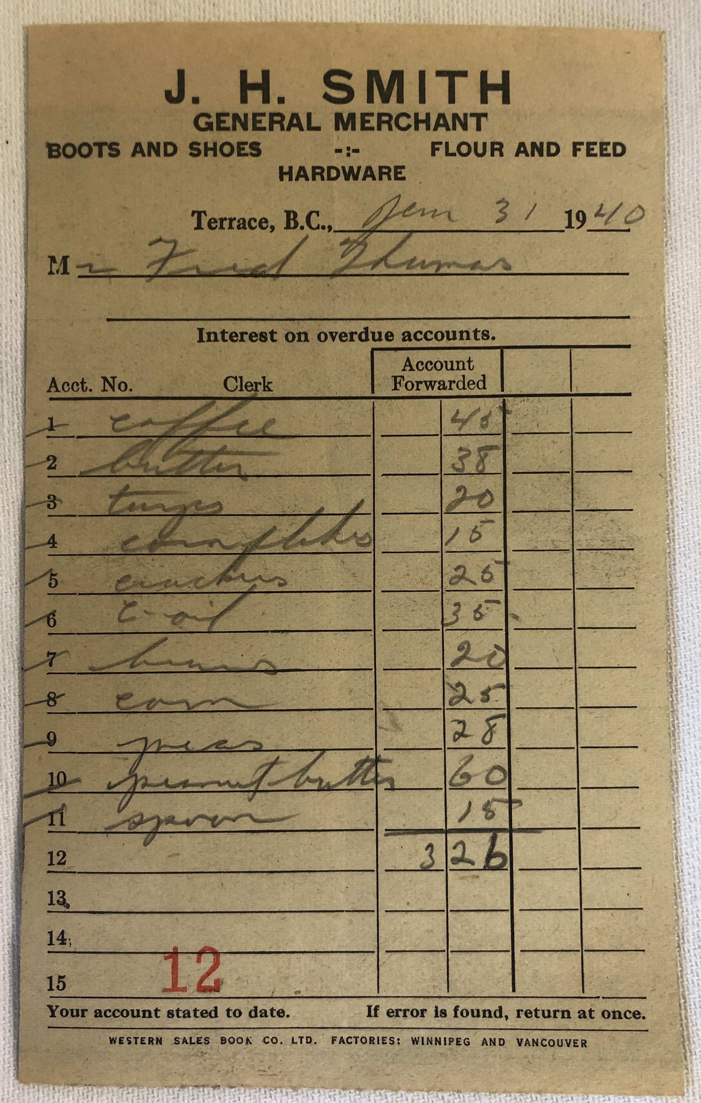 'J.H. Smith General Merchant Receipt'Entry/Object ID