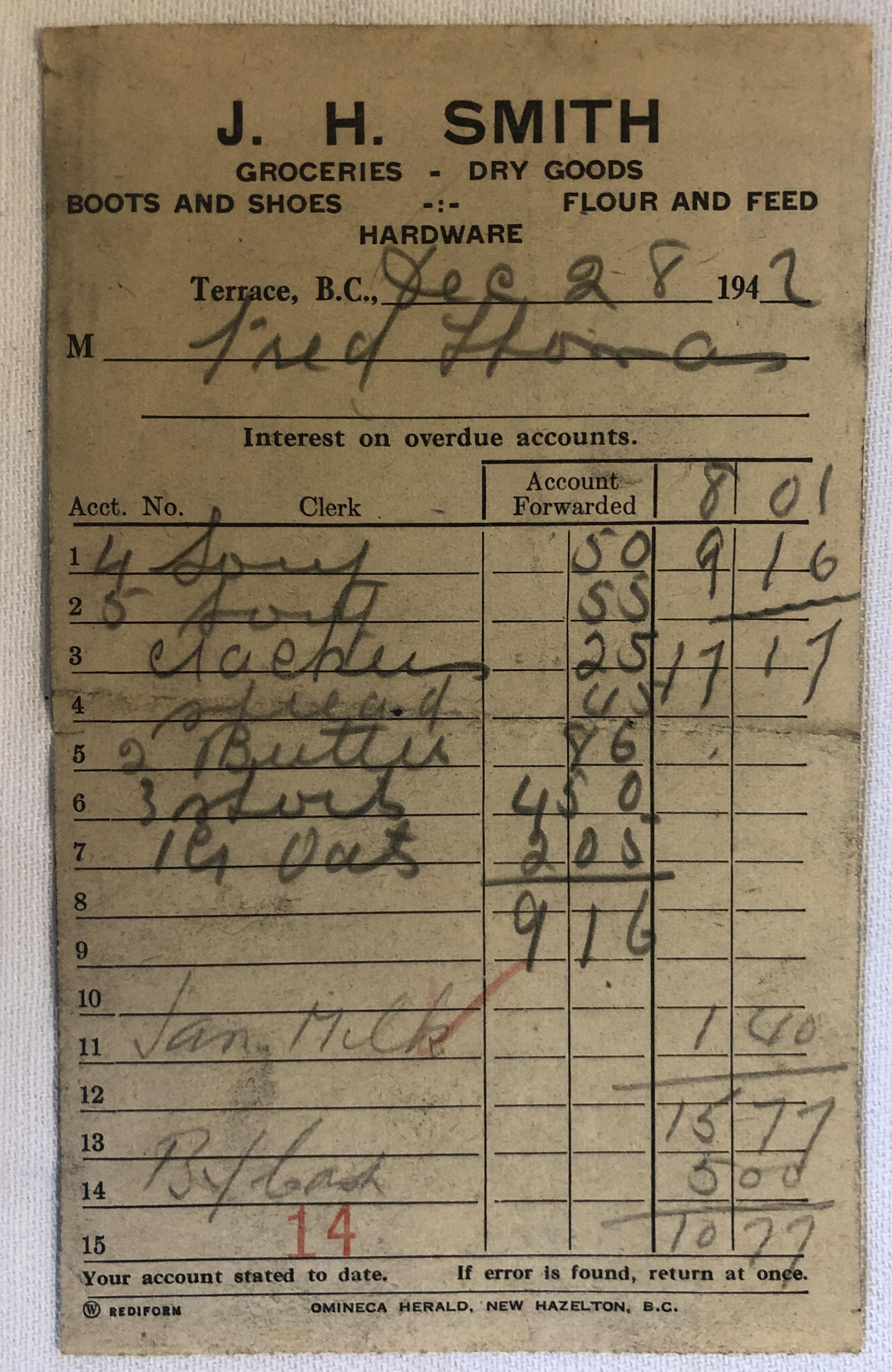 'J.H. Smith General Merchant Receipt'Entry/Object ID