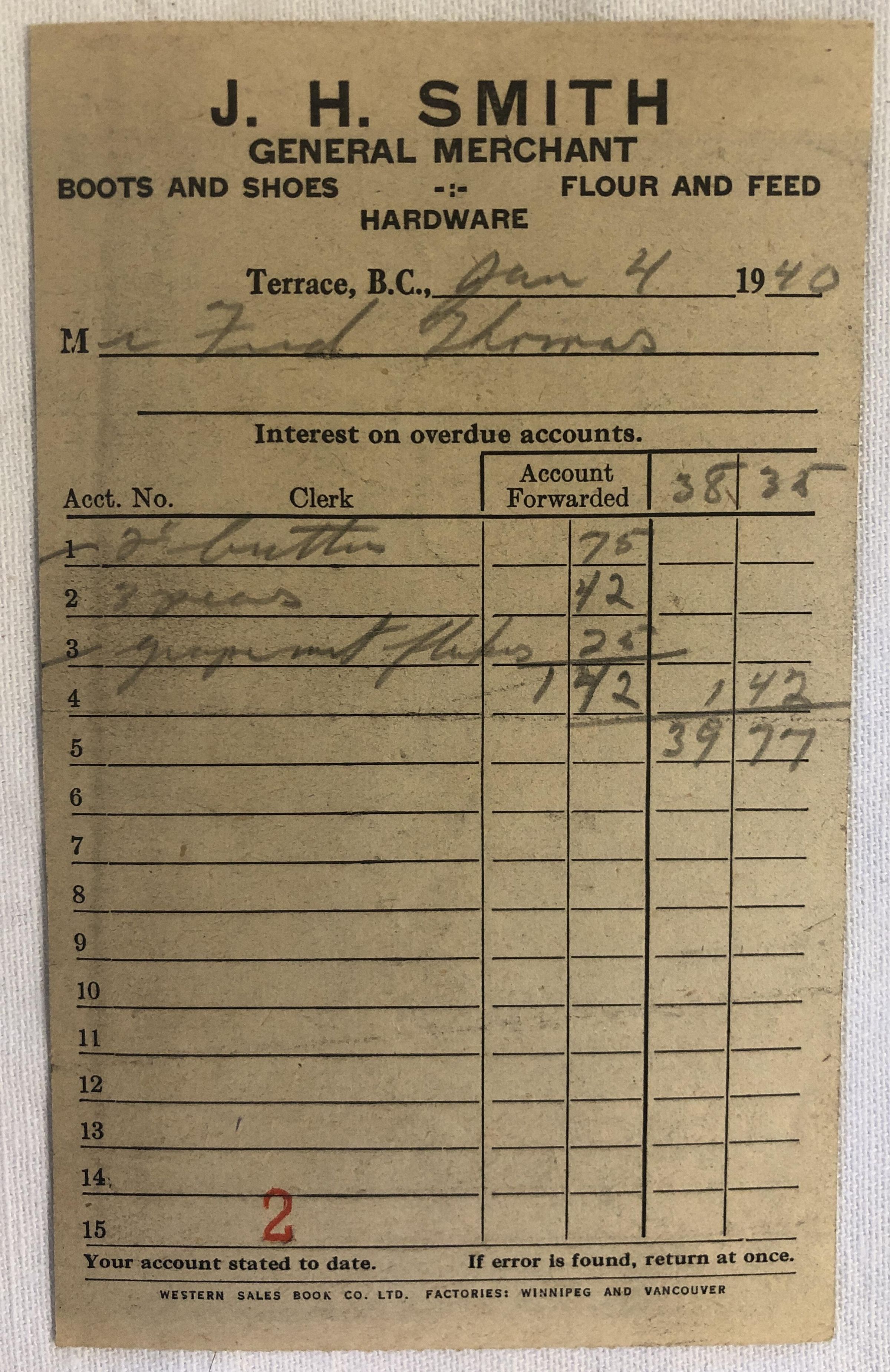 'J.H. Smith General Merchant Receipt'Entry/Object ID