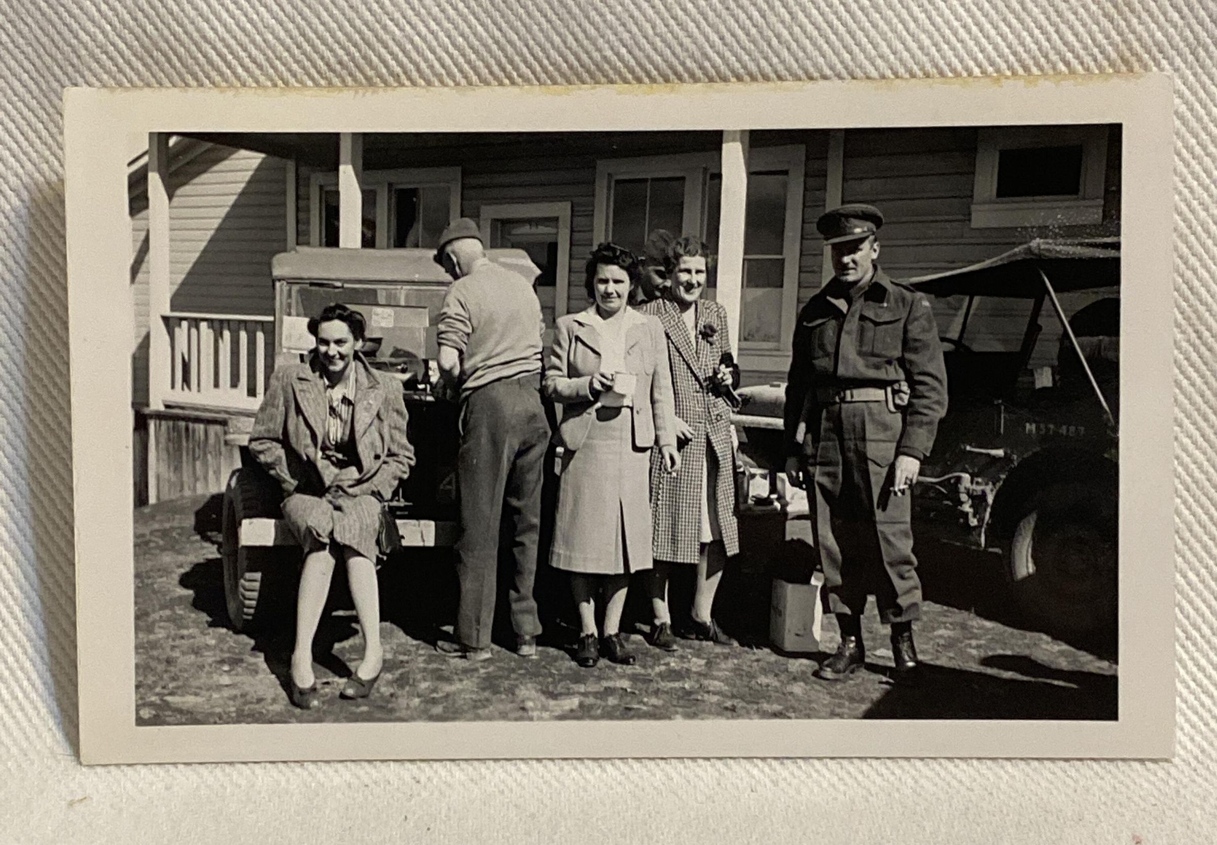 ‘Jeep convoy from Terrace… outside Hazelton hotel, Easter 1944’Entry/Object ID