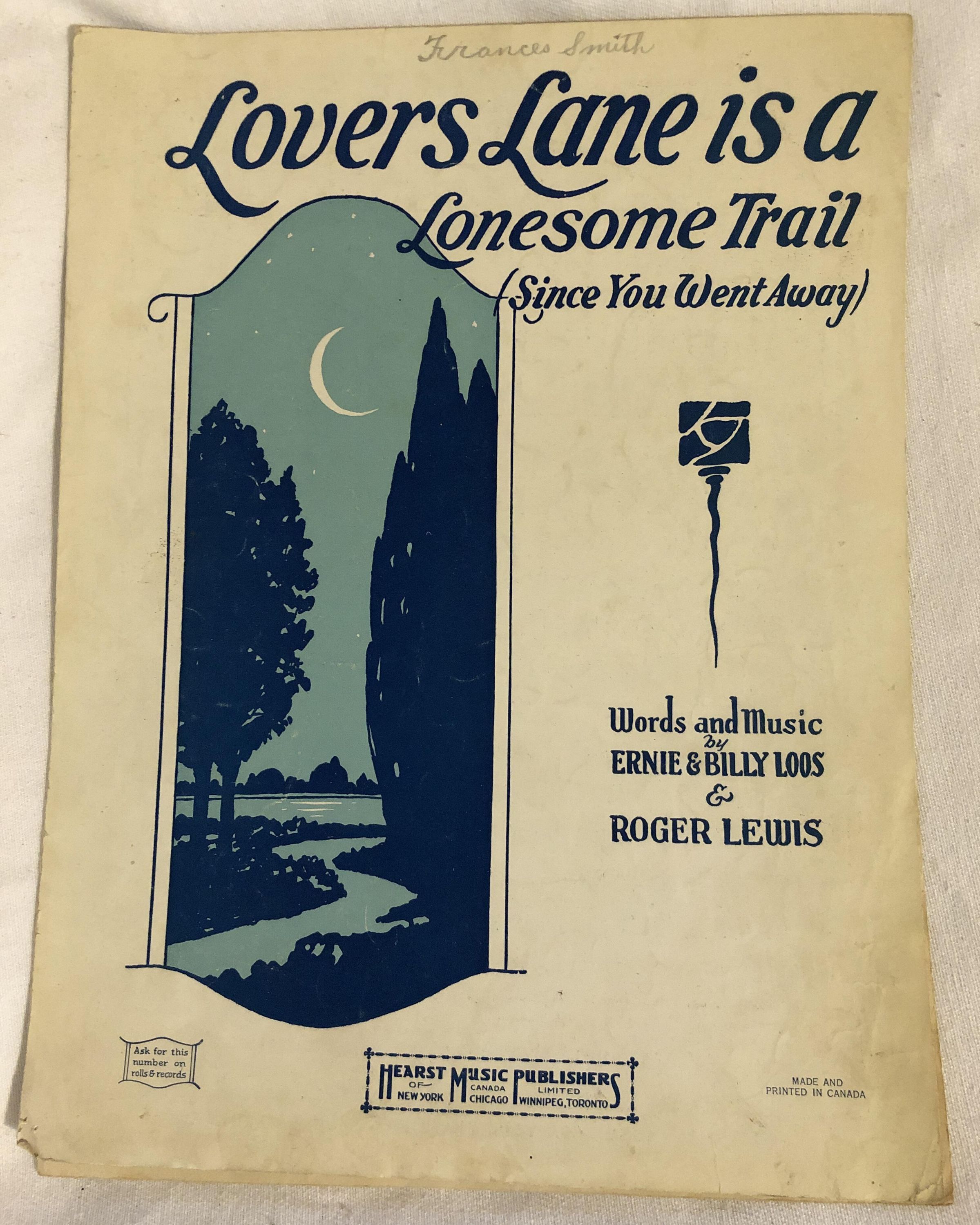 'Lover's Lane is a Lonesome Trail' Sheet MusicEntry/Object ID