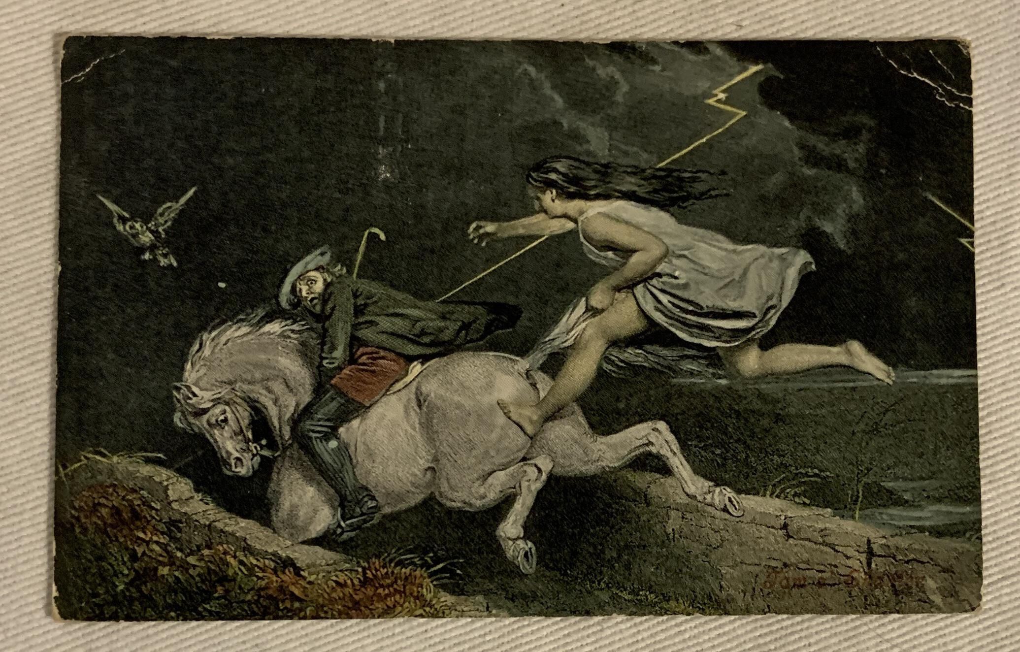Image of a man on horse followed by someone with lightningCollection