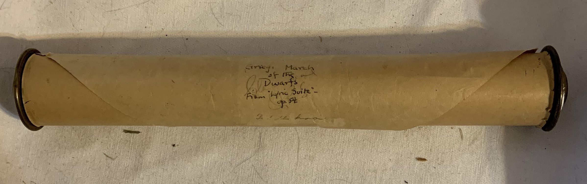Brown paper roll with two gold metal endsContext