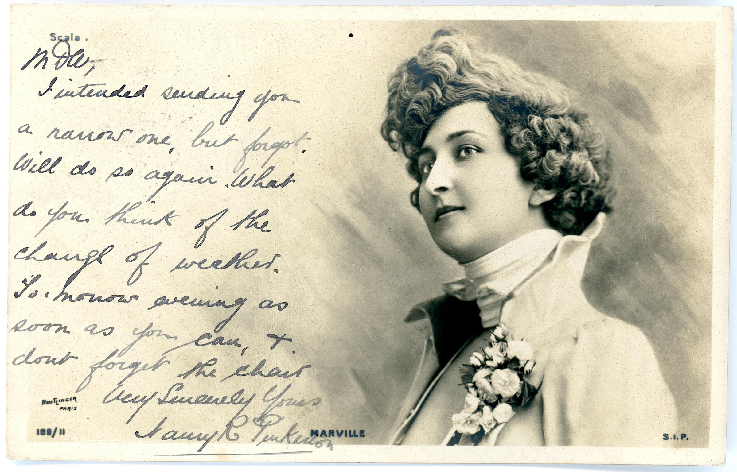 Postcard from 1904 of a young women in profile, her name is MarvilleCollection