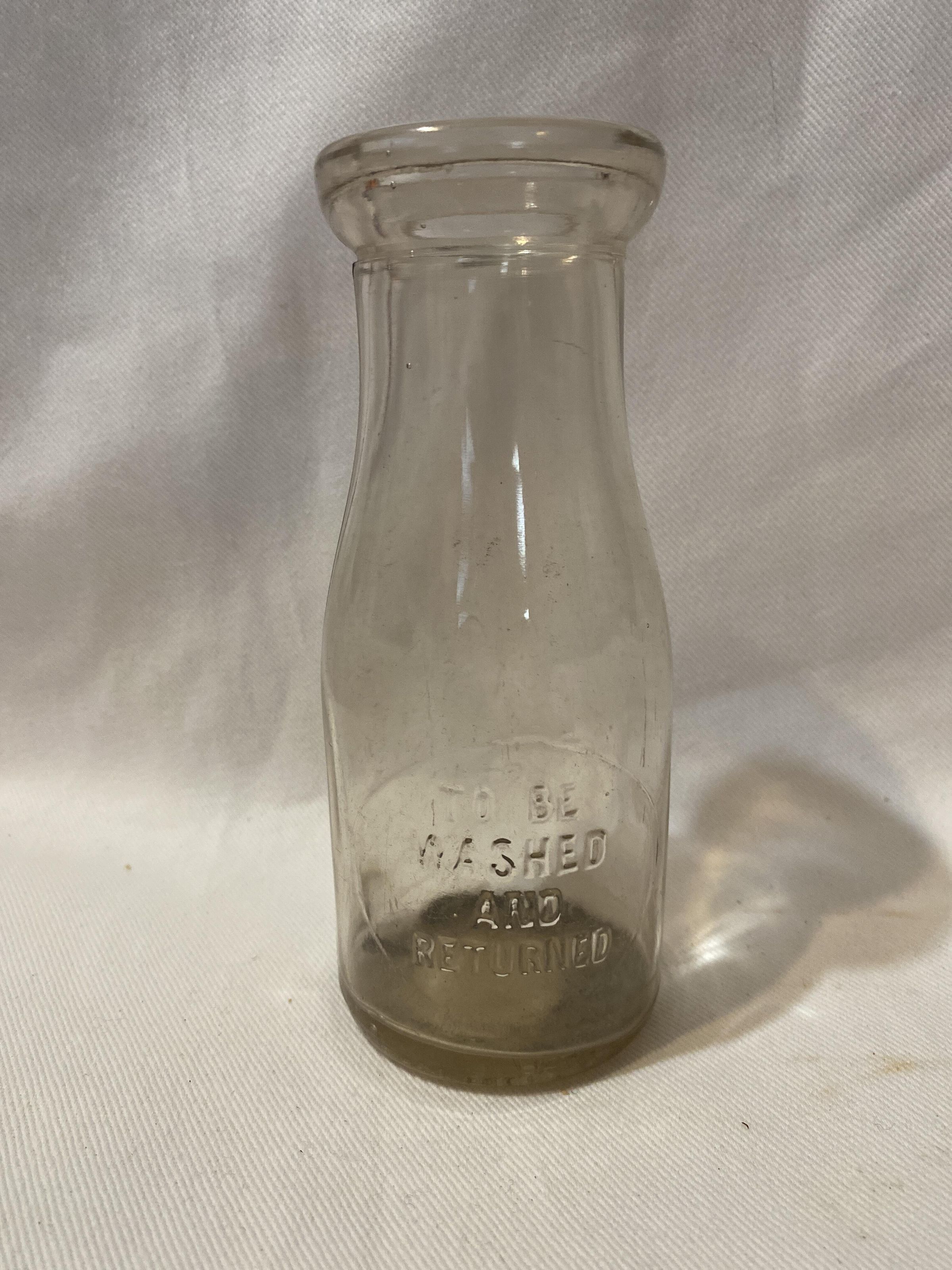 Pint milk bottle says 'To be washed and returned'Acquisition