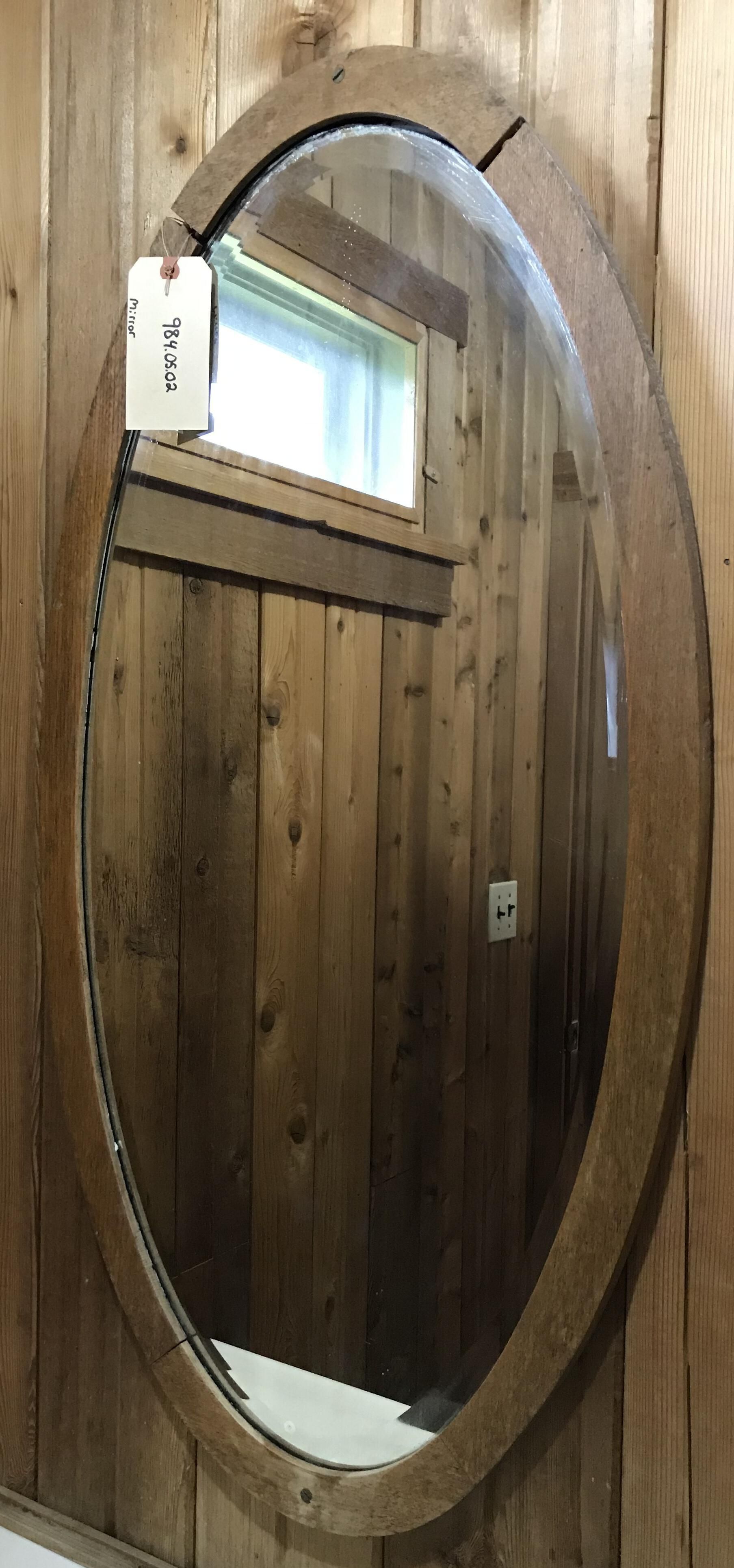 Oval mirror, golden oak, in washroom of hotelAcquisition