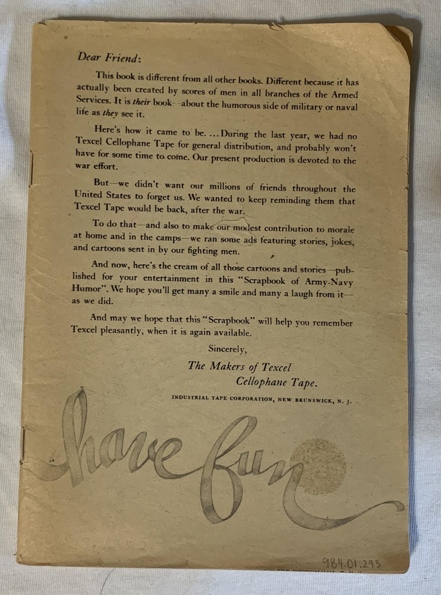 World War II book "Scrap book of the Army - Navy Humor"Acquisition