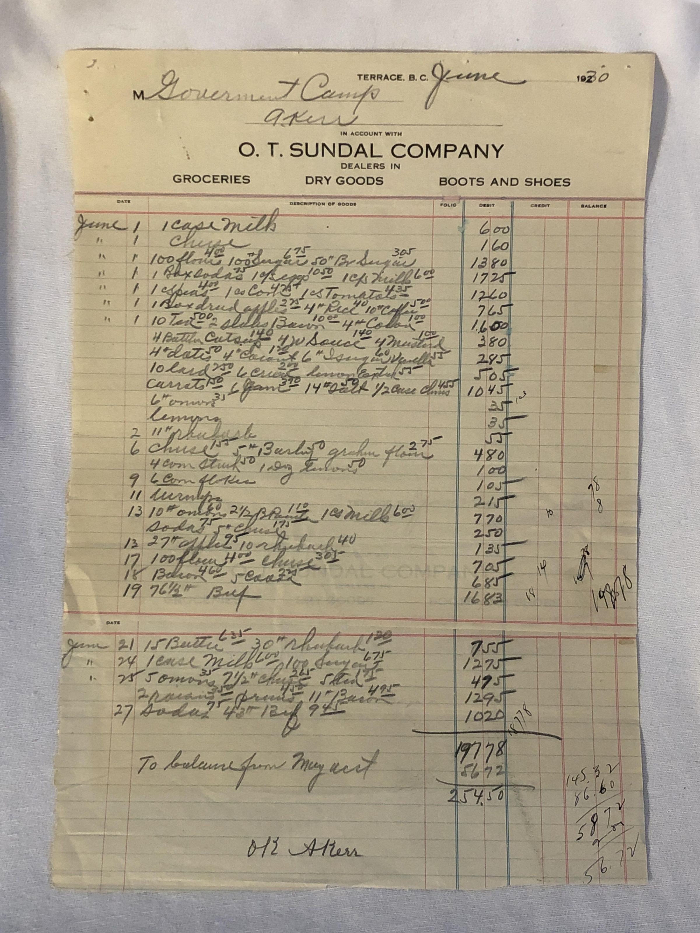 'O.T. Sundal Company 1930' Receipt