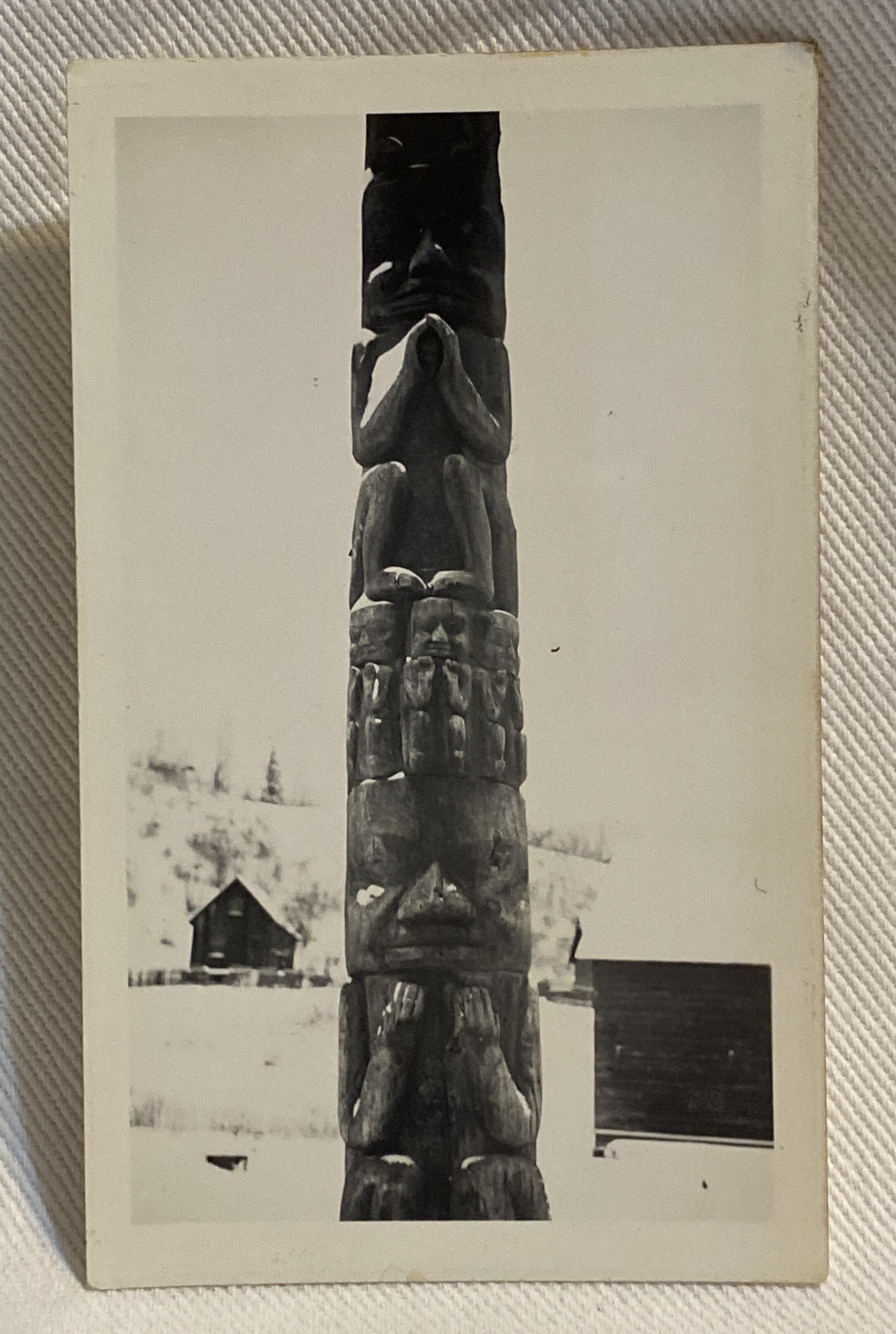 Totem pole in Old Hazelton in January 1943Photograph Details