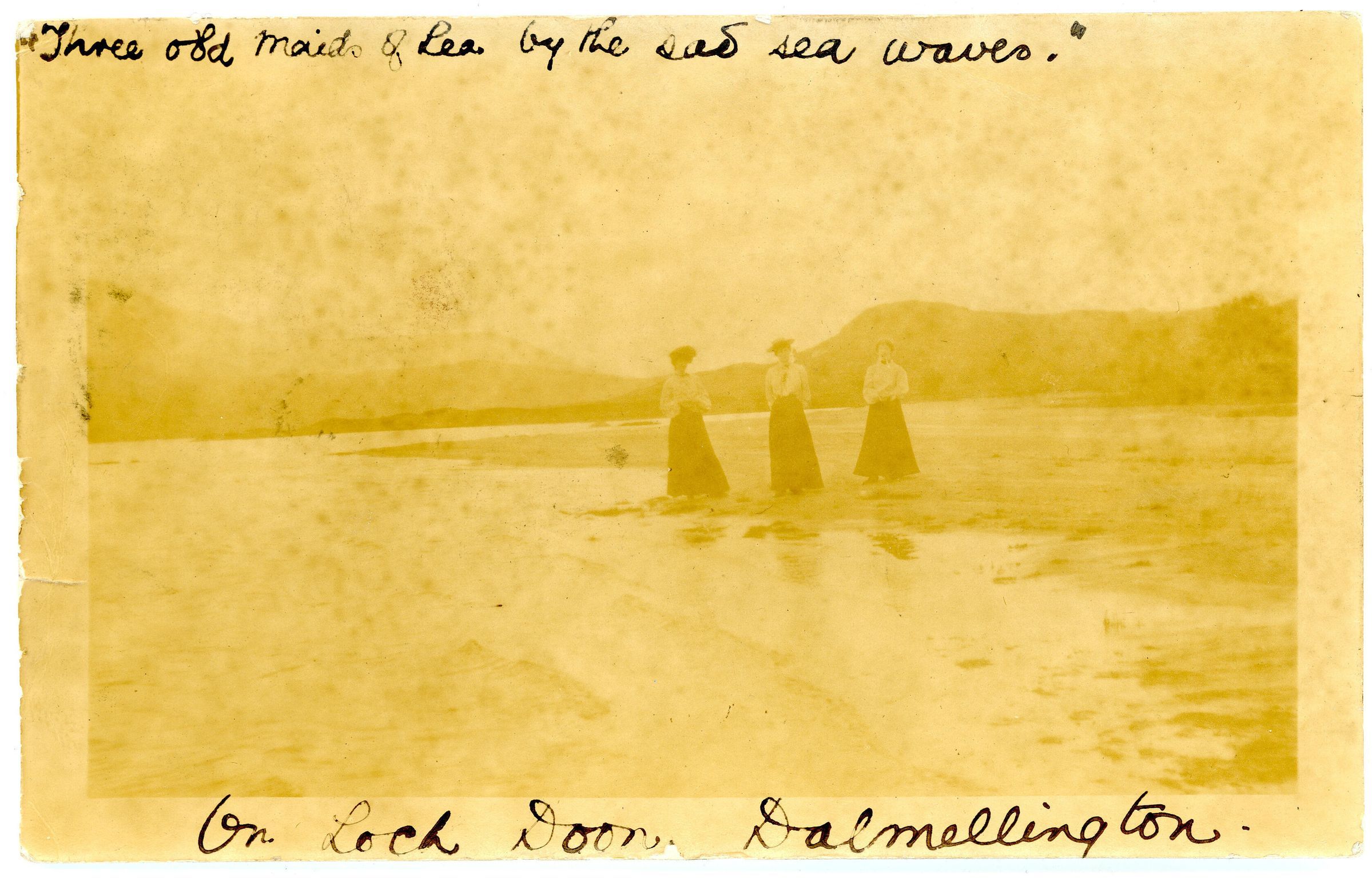 Postcard from 1904 of 3 women standing near water. "On Loch Doon"Collection
