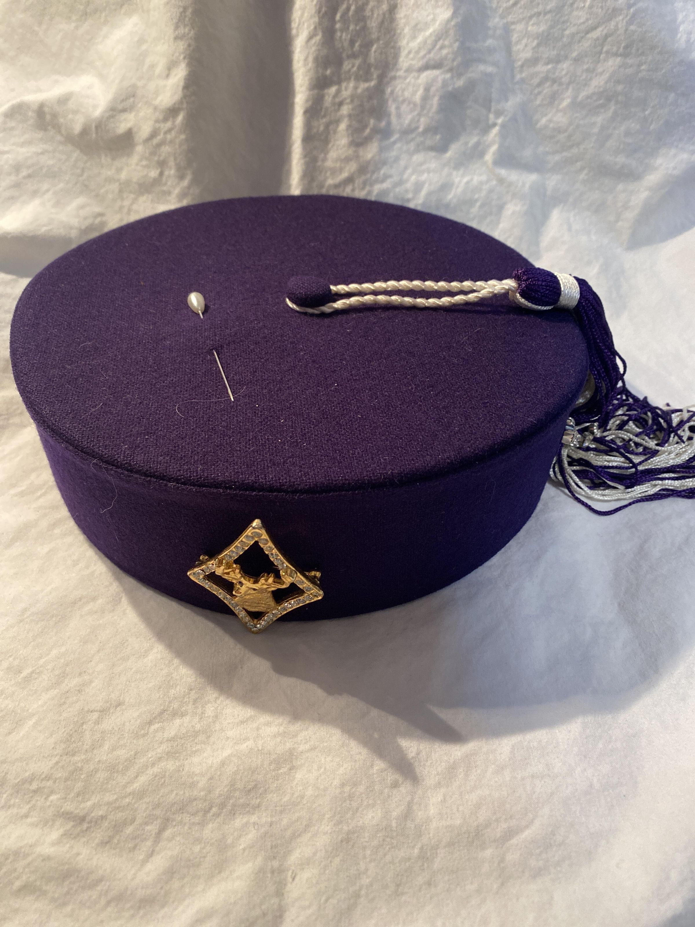 This hat was used in the 'Order of the Royal Purple' which was a Terrace group for women. The order received the charter April 27th 1958 and gave it up in June 10 2019 to join the elks lodge #425Cataloged By