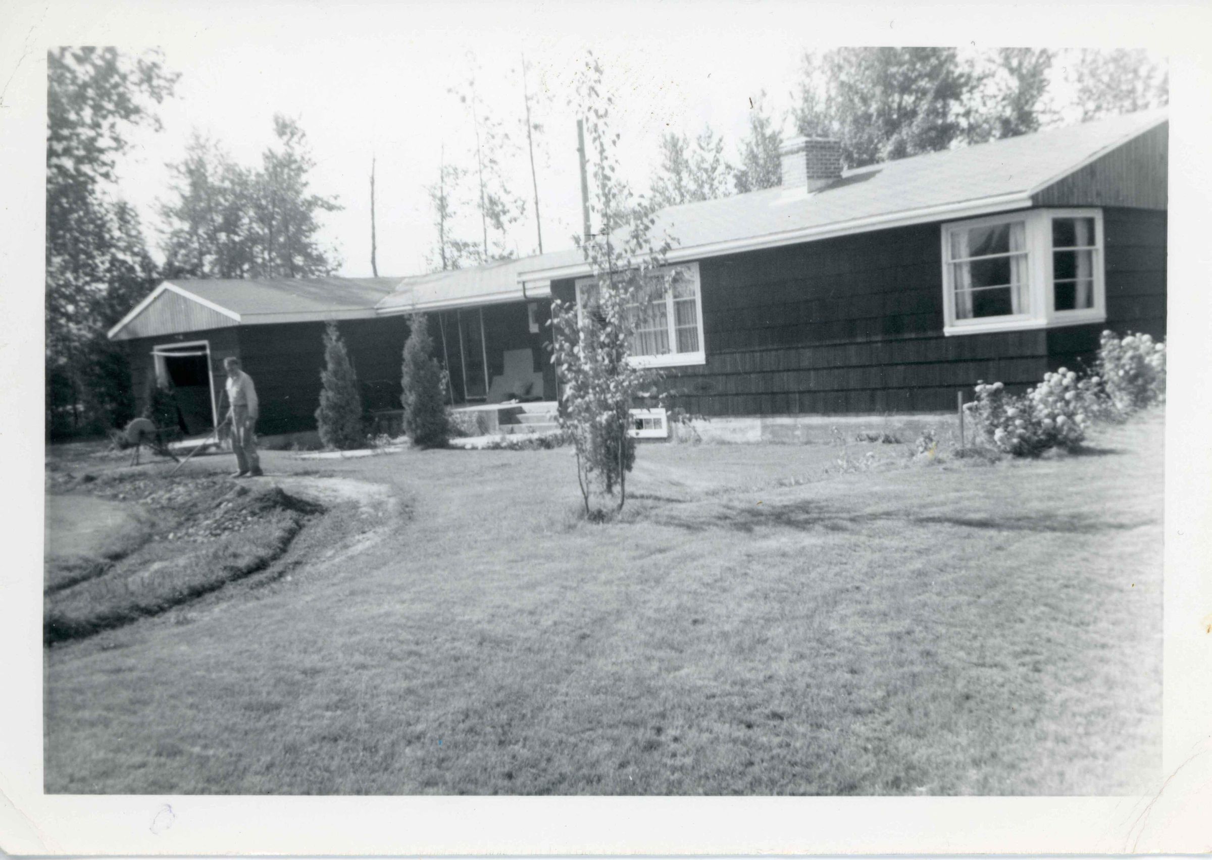 B+W photo of a man in the front yard of 4804 Loen AvenuePhotograph Details