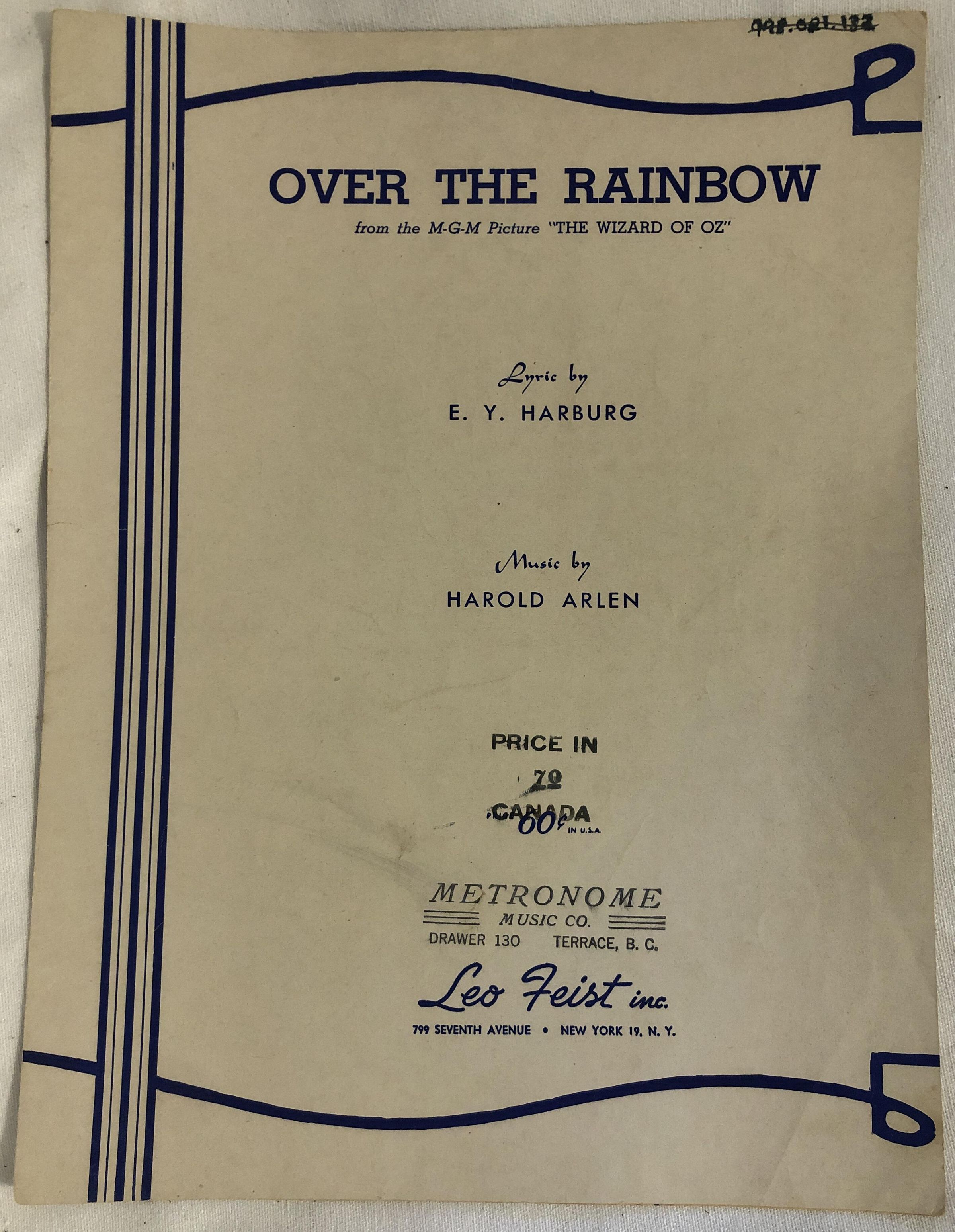 'Over the Rainbow' Sheet MusicEntry/Object ID