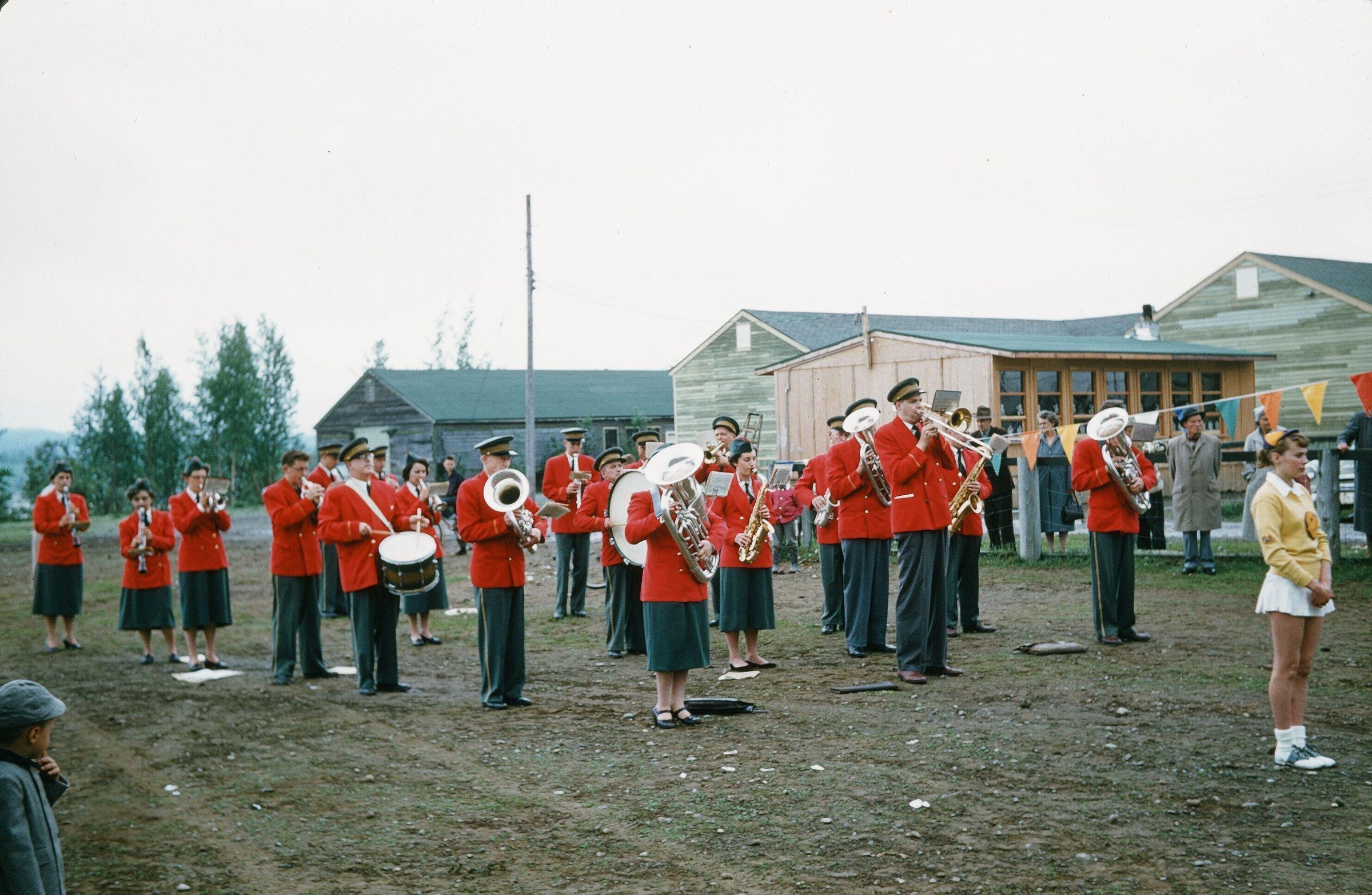 Riverside Park with Riverside School in background Dr Lee on trombone in centre, Patsy Philippson at front right 1957-59