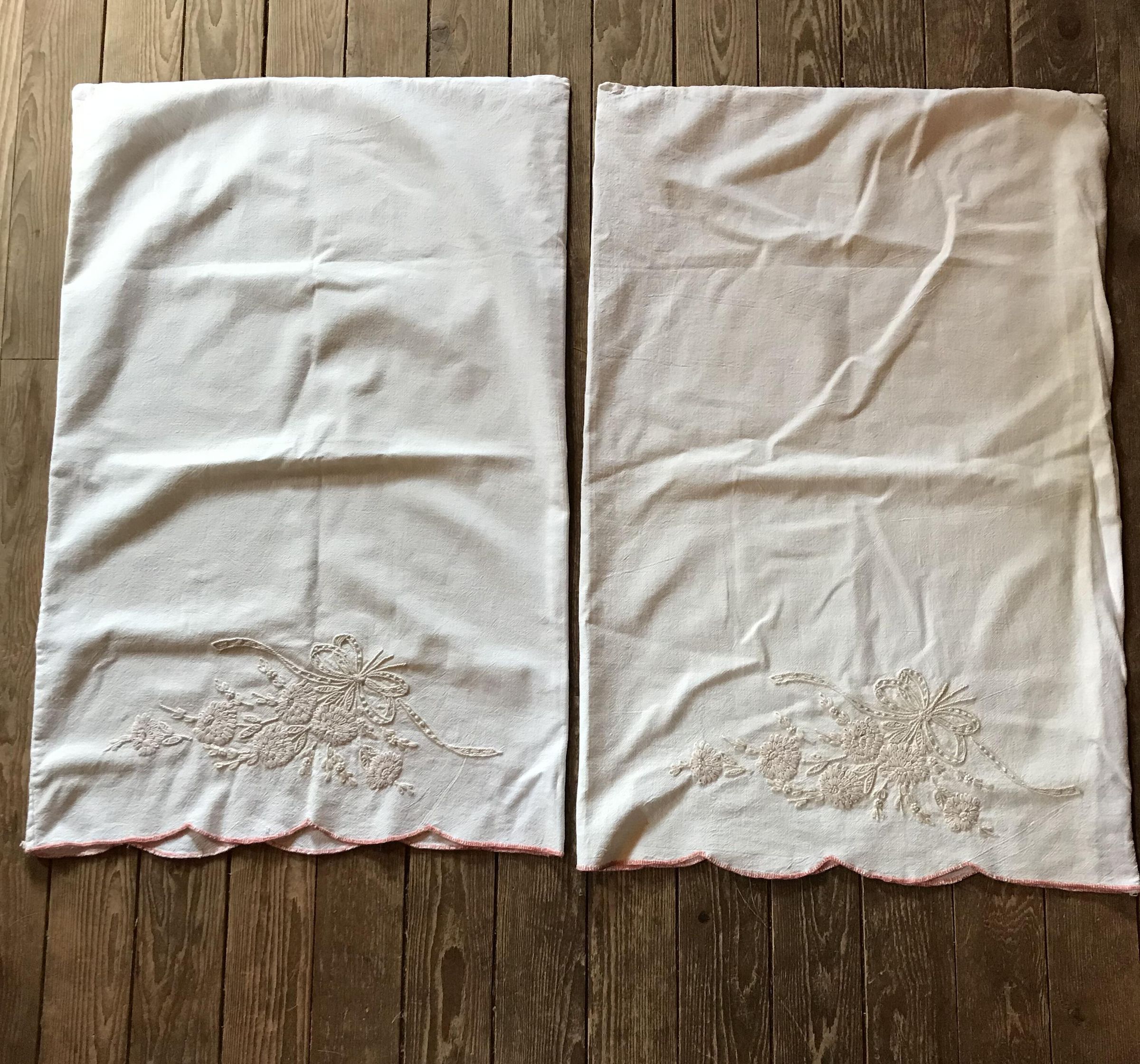 The embroidery was only partly complete on the second pillow case. It is tempting to speculate about why the original needle woman stopped the project. Did she run out of thread? Did a tragedy occur?