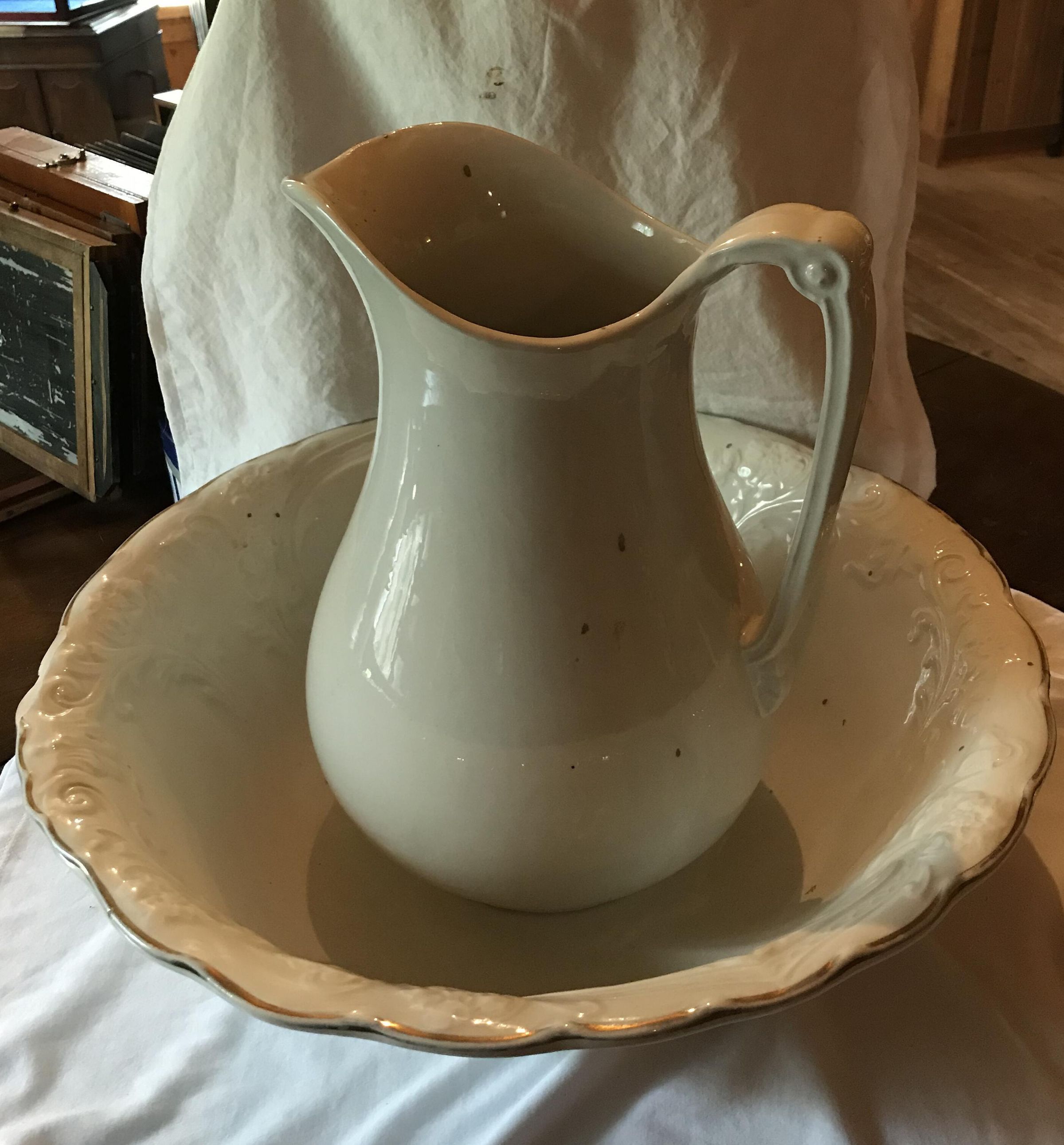 Porcelain basin and pitcher