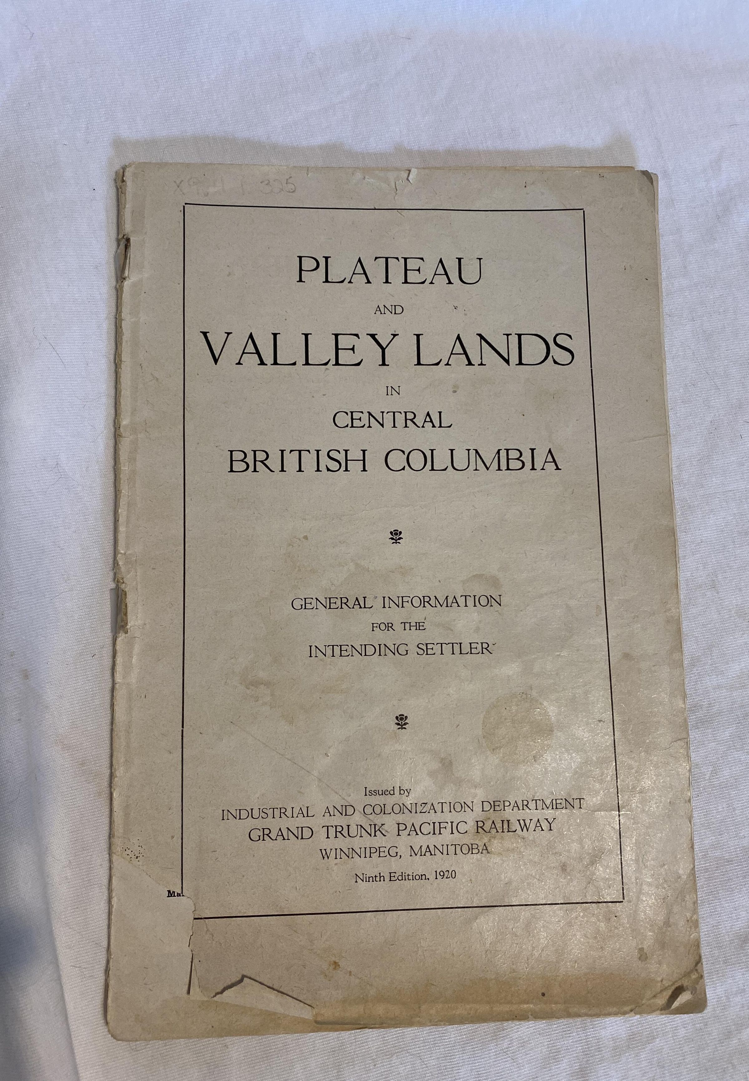 Settlers book - "Plateau & Valley Lands in Central BC" dated 1920Acquisition