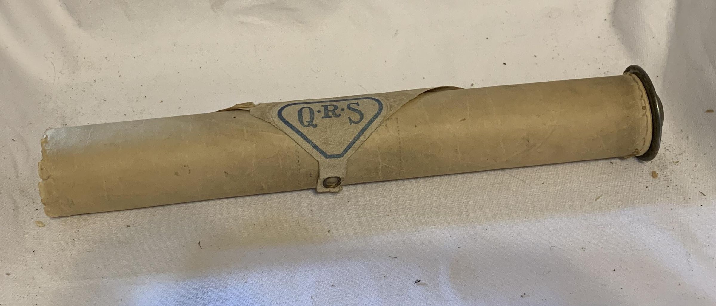 Brown paper roll with one black metal end (other end missing)Context