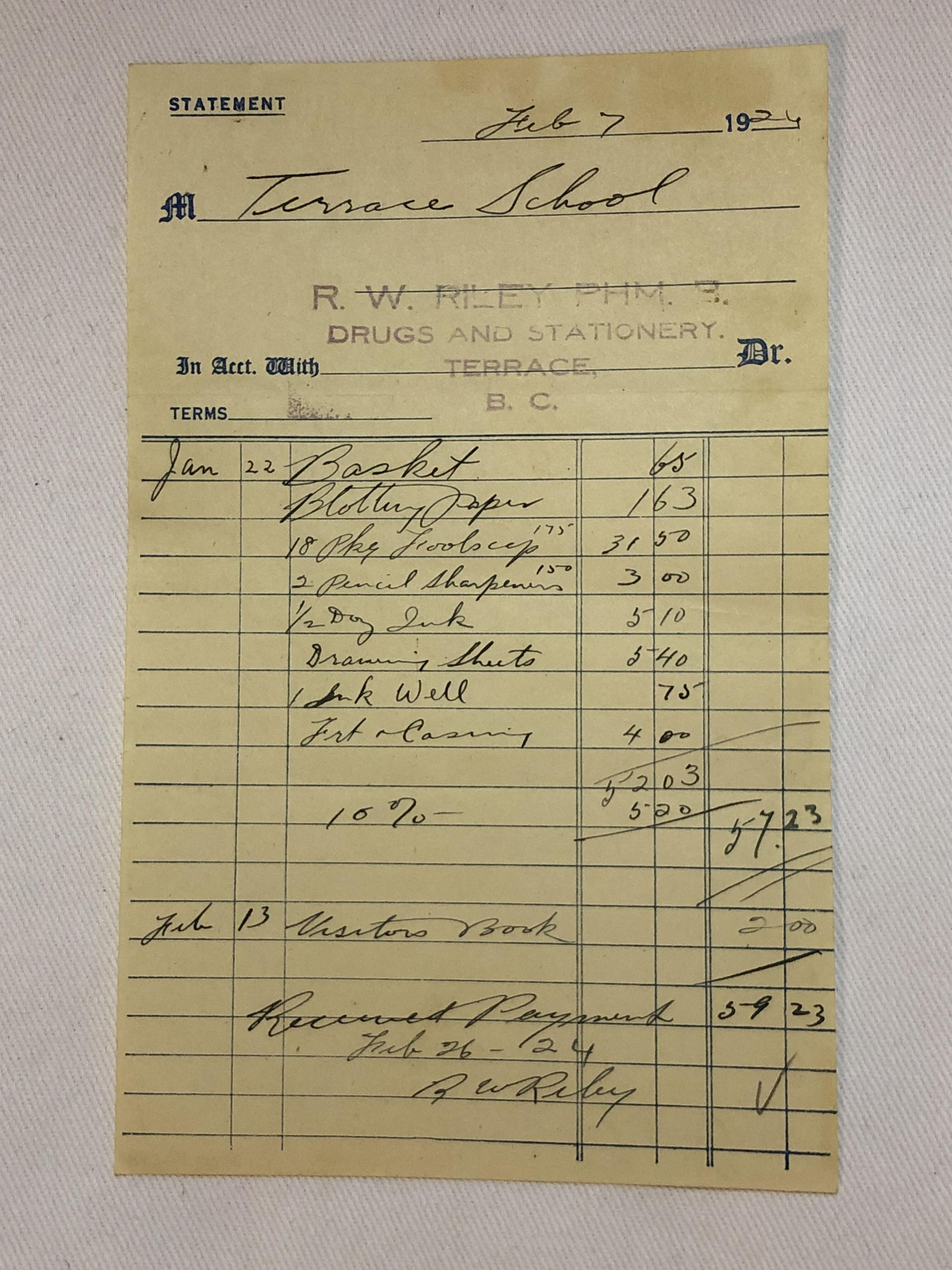 'R.W. Riley Feb 7 1924' ReceiptEntry/Object ID
