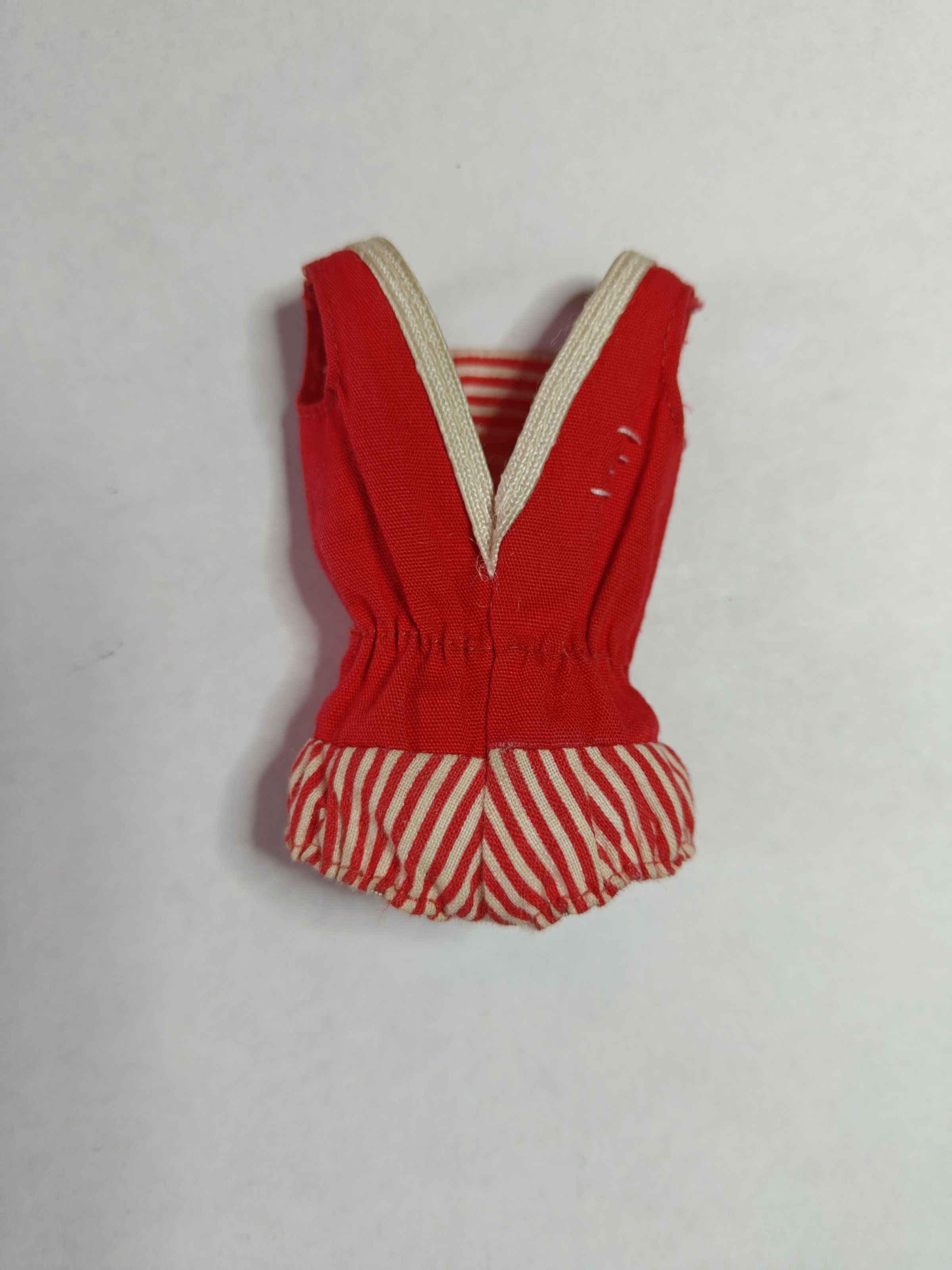 A red swimsuit for a Barbie doll. From the 1960s or 1970s.Cataloged By