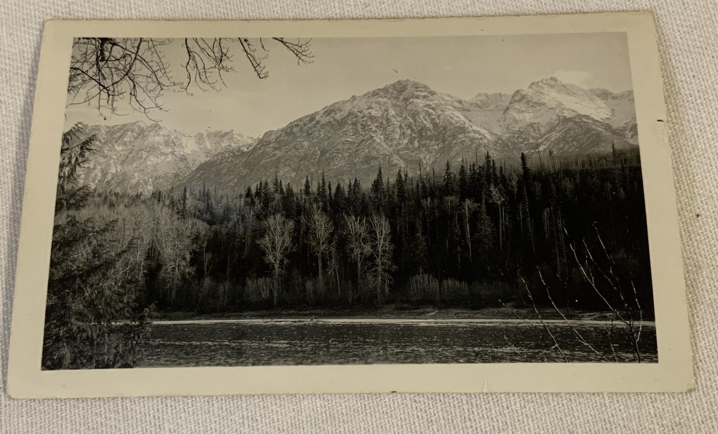 Looking across Skeena to Roche Deboule from Elliotts in Hazelton Dec. 1942Acquisition